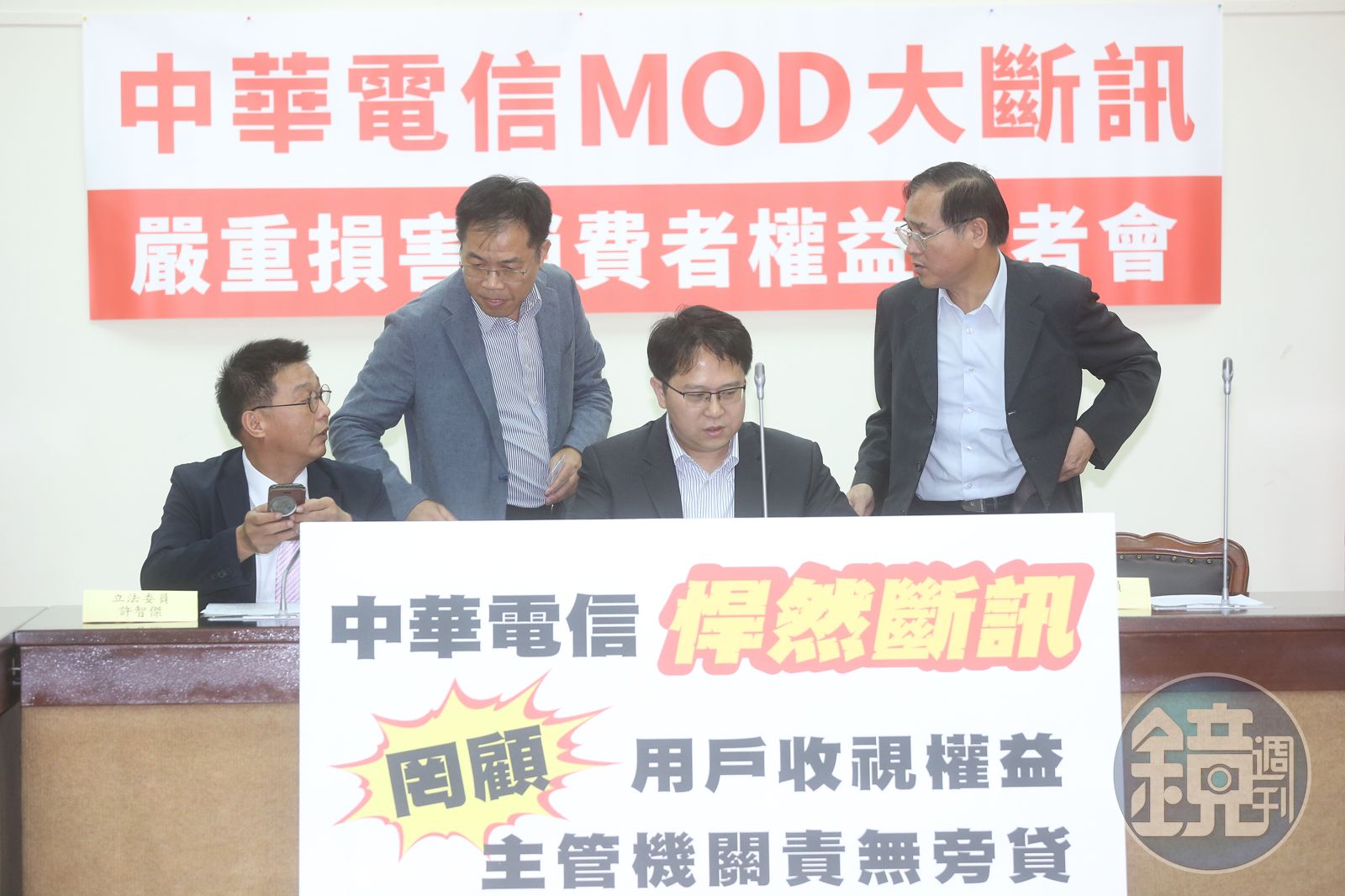 面對中華電信MOD無預警調整頻道,消費者們不滿的怒火,也燒向立法院,立委不分黨派跳出來開記者指責中華電信鴨霸,民進黨立委邱志偉痛批,46個頻道7月起挪出MOD,在沒有事先溝通協調狀況下,中華電信片面斷訊,影響80萬用戶權益,抗議電話湧入中華電信客服,甚至無法接通,民進黨立委許智傑批評,中華電信片面毀約,根本是胡搞。