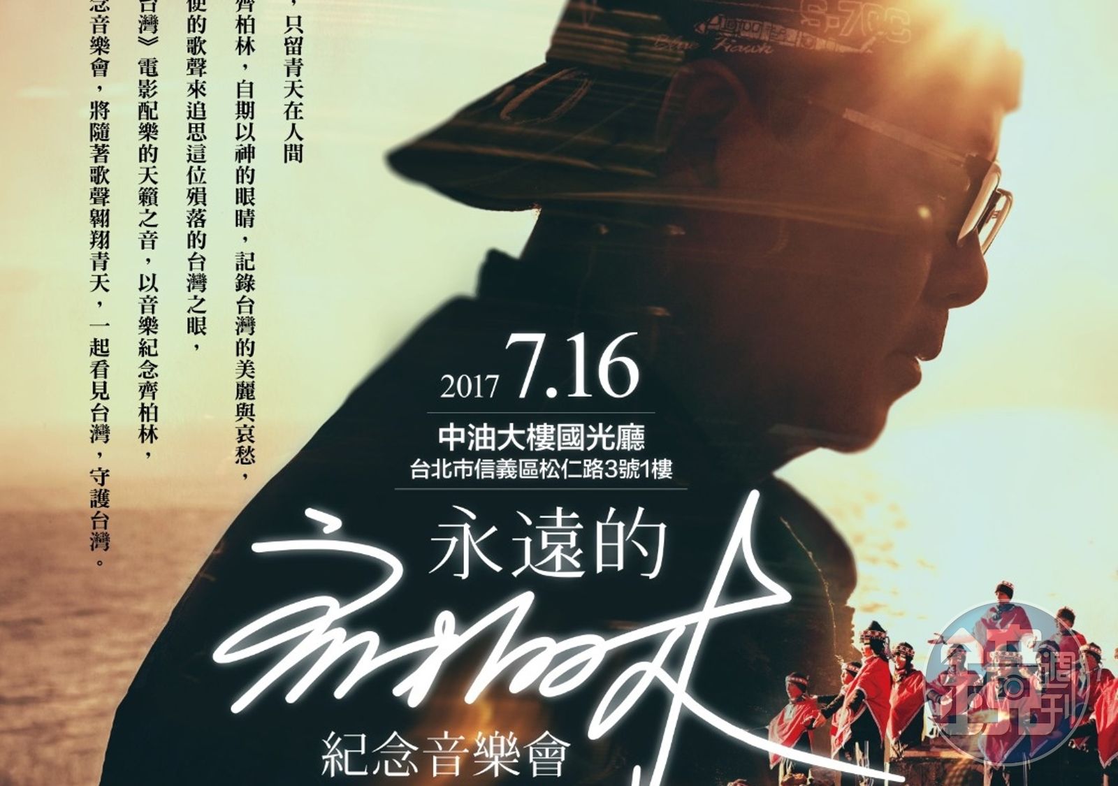 齊柏林紀念音樂會將於7月16日下午,在中油大樓國光廳舉行,海報今日出爐。(台灣阿布提供)發布時間:2017.07.06 19:20 臺北時間
