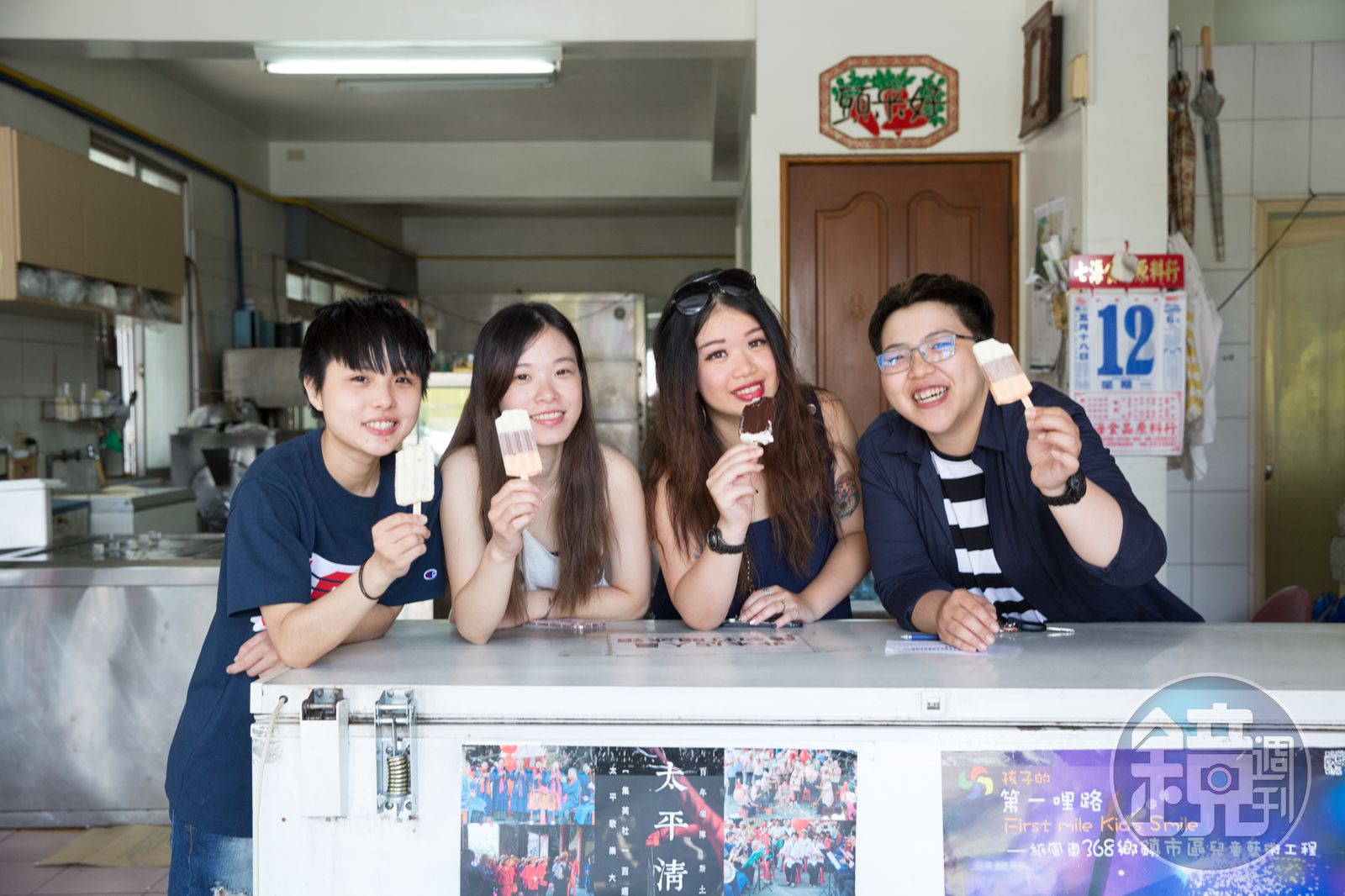 除了擅長做冰棒,這裡還有別處少見的「三明治(冰餅)」和「玉米冰」,根本就像是一間老冰博物館。「冰餅要每日現做才美味,因為要保持餅乾的乾燥和酥香,凍了太久的冰餅,口感就不對。」陳灼華一邊說,一邊把一片片蘇打餅鋪在鐵盤裡,盛上一球球牛奶冰淇淋,再蓋上餅乾,壓實塑型後包入繪有店名的油紙,重覆俐落的動作讓人看得入迷,我望著那冰餅差點喊出:「給我!給我!」