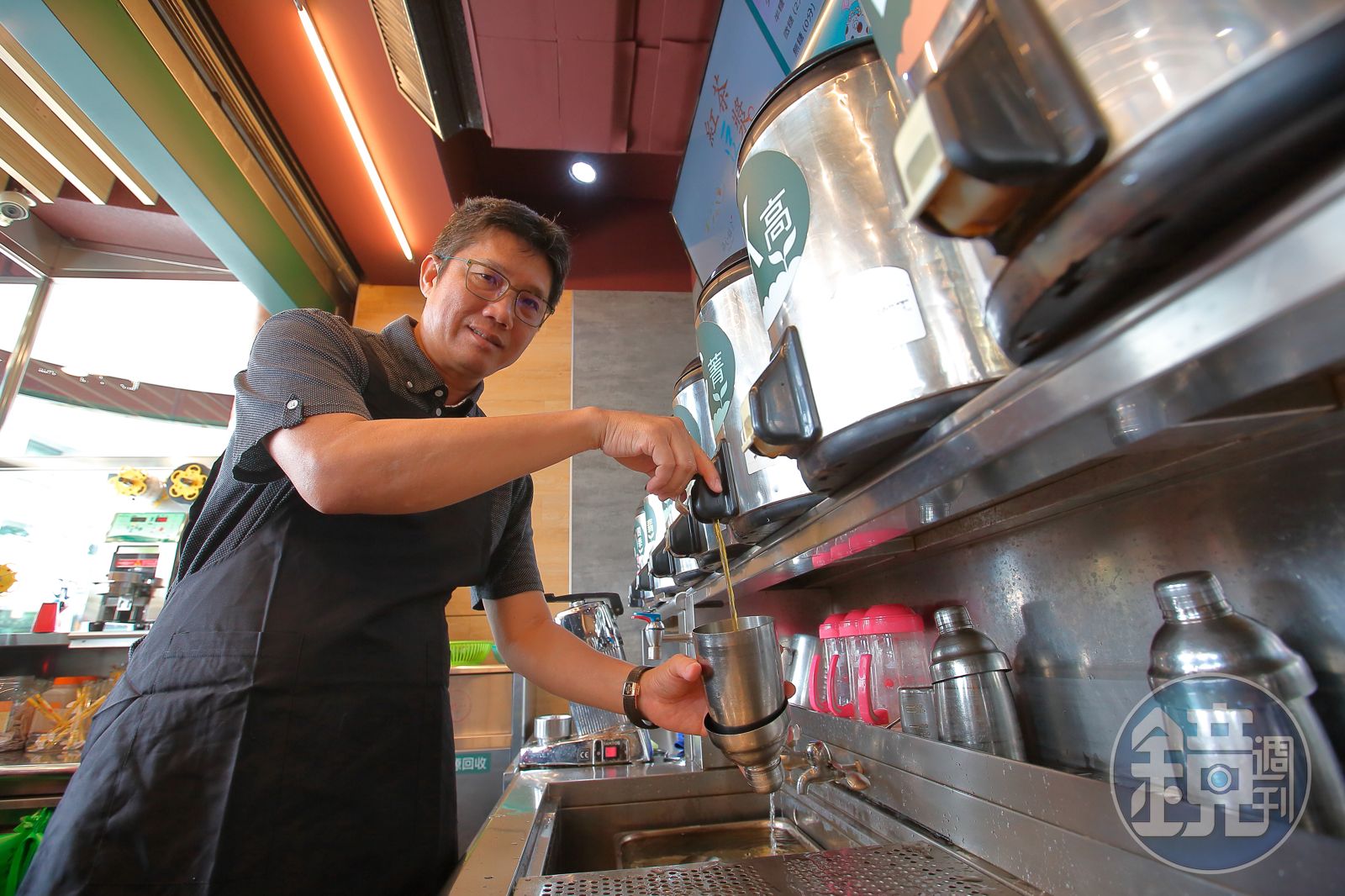 話還沒說完,又說:「你趕快喝看看新上市的蜂蜜蘋果醋紅茶,怎麼樣?」趙福全穿一件深色有領的運動風上衣,暗色長褲搭配球鞋,高挑身材保持得宜,看起來一副愛運動、機動性十足模樣,笑容靦腆地催促我品嘗飲料。