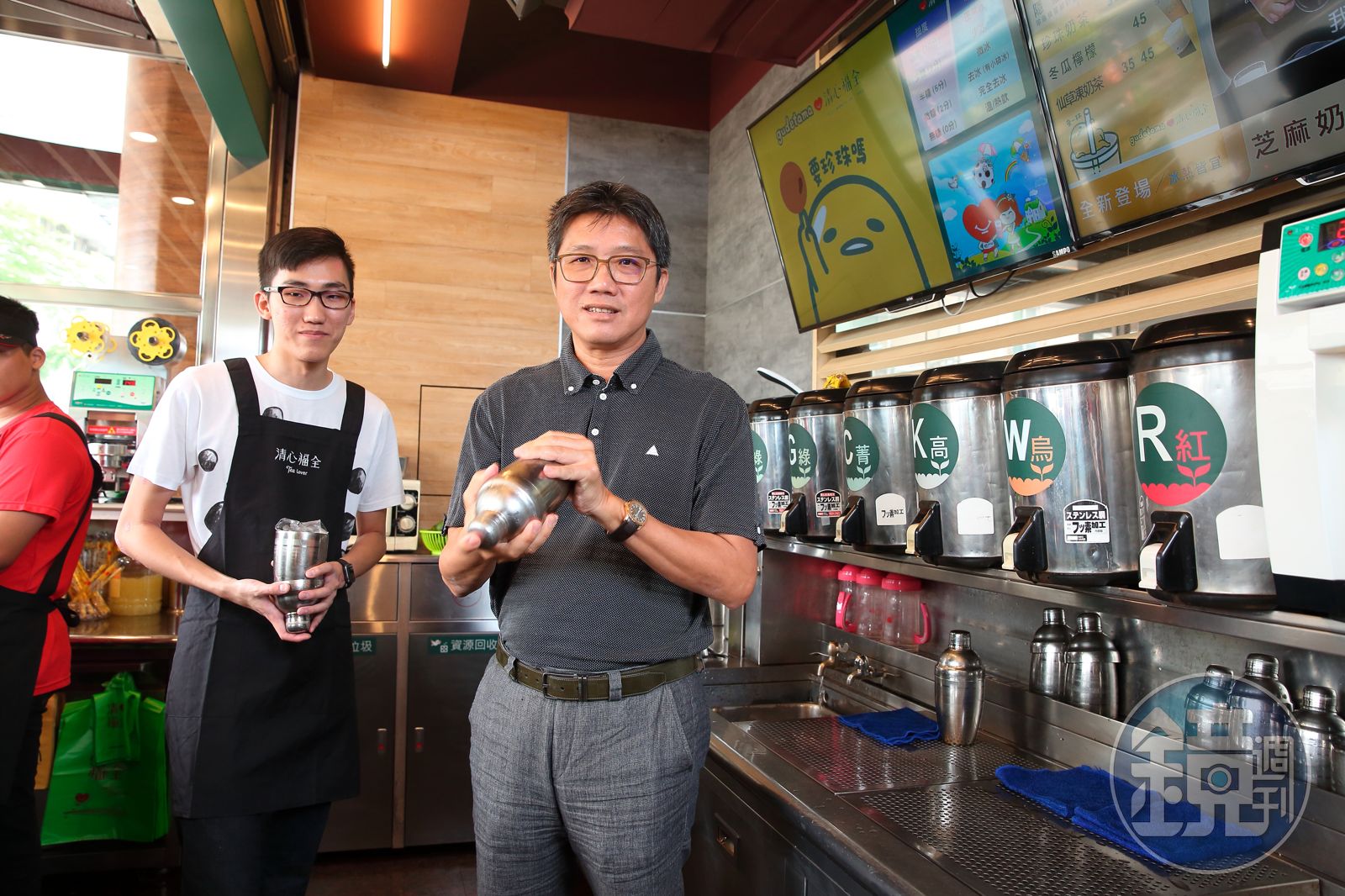 「你趕快喝看看新產品蜂蜜蘋果醋紅茶,怎麼樣?」清心福全創辦人趙福全身穿一件深色有領運動風上衣,暗色長褲搭配球鞋,高挑身材保持得宜,看起來一副機動性十足模樣,笑容靦腆地催促我品嘗飲料風味,化解我內心的不安。