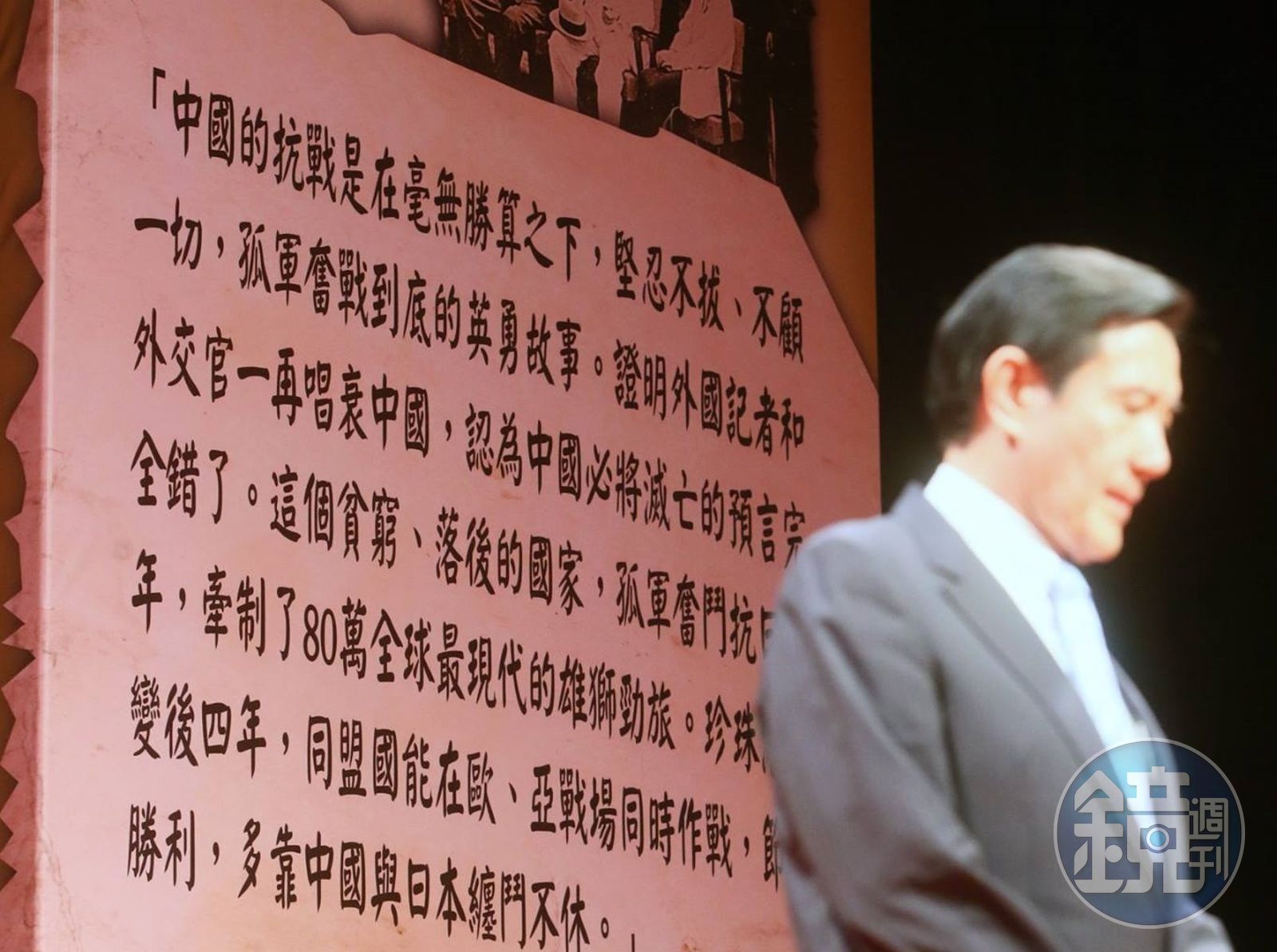 馬英九表示,因為時過境遷等諸多因素,許多人並不知道當年我國為二戰勝利與世界和平作出了多大的貢獻,所以當牛津大學的米德(Rana Mitter)教授, 2014年出版一本講述我國對日抗戰貢獻的暢銷書《被遺忘的盟友》(Forgotten Allies: China’s World War II 1937-1945)。說明在八年抗戰中,那些中華民國軍民被遺忘,但卻值得流芳百世的事蹟,讓他讀來既沉痛、又驕傲。