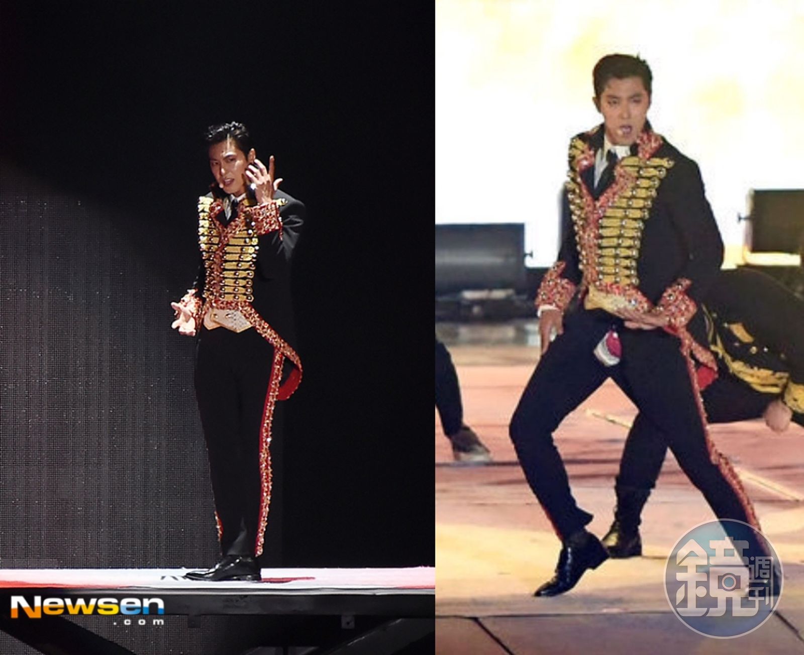 東方神起成員允浩在SMTOWN演唱新歌〈Drop〉,沒想到跳到褲子裂開,露出紅色內褲。(合成圖片,取材網路)發布時間:2017.07.09 11:05 臺北時間