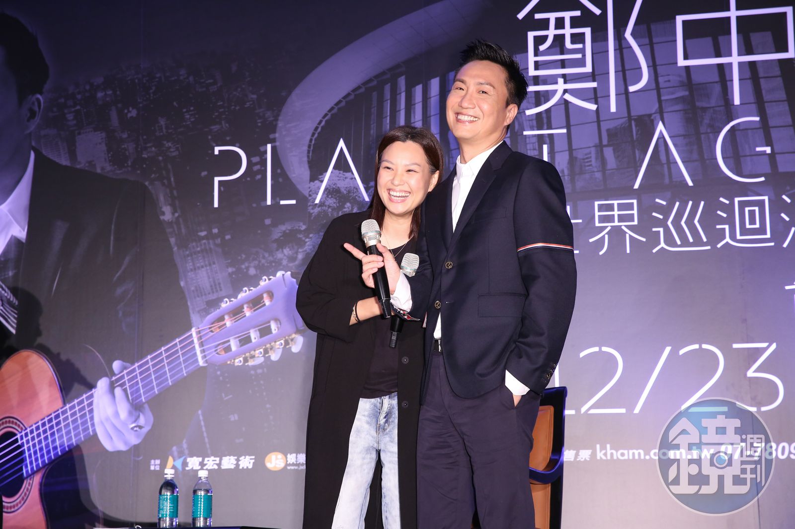 老婆記者會全程作陪、被主持人黃子佼拉上台放閃,余思敏形容鄭中基「在我心中是100分」,還透露平常少進廚房,想吃什麼跟鄭中基點菜、老公就會去學,當年的長髮浪子如今成為超級愛家好男人,2夫妻生了1女1子,會不會想再生?鄭中基笑說:「我可以,但老婆要休息、太累了,她希望能生3個,但會想等到兒子上小學再生。」