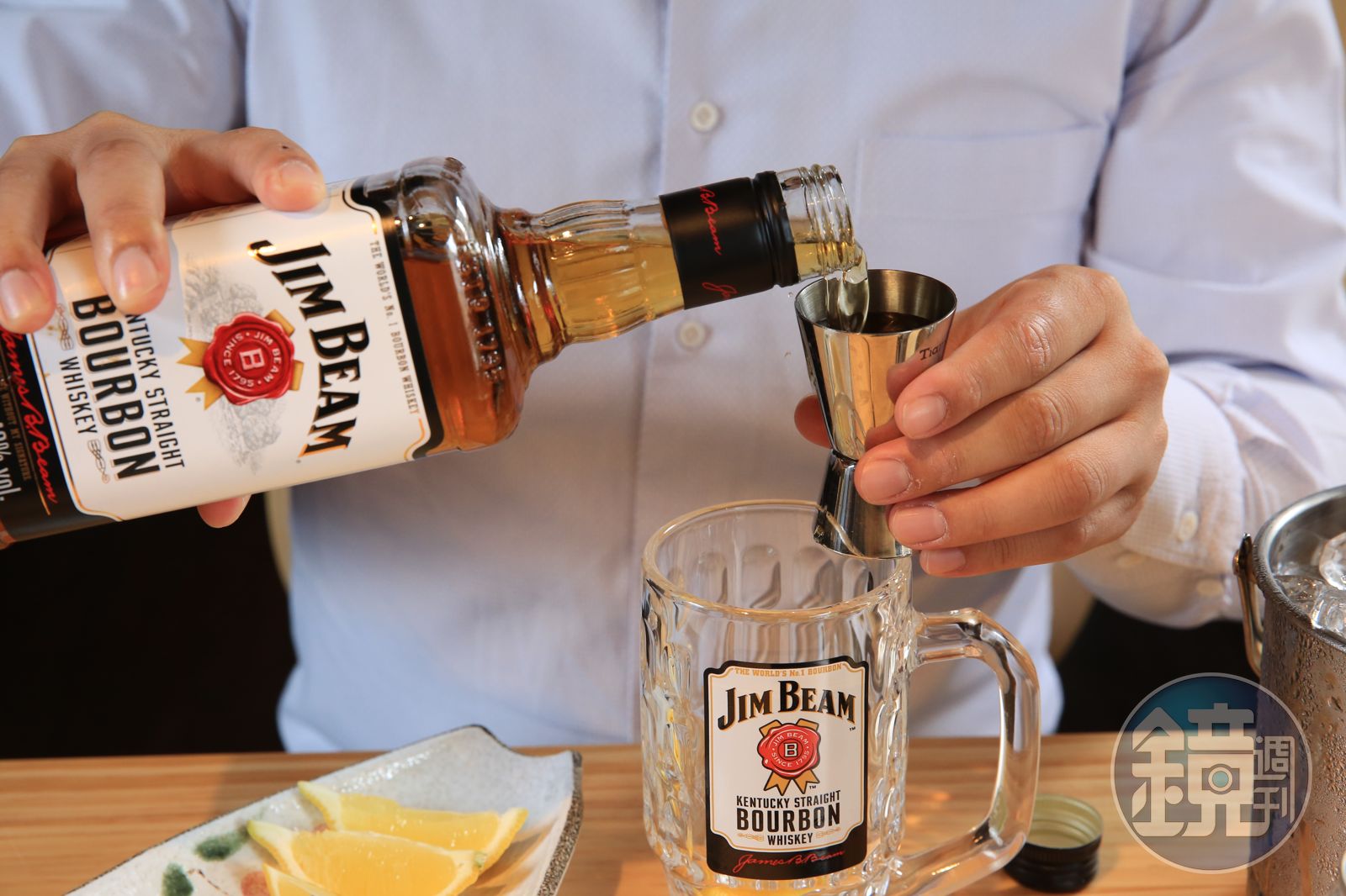 STEP2:以威士忌和蘇打水1:4的比例,將酒倒入杯中。