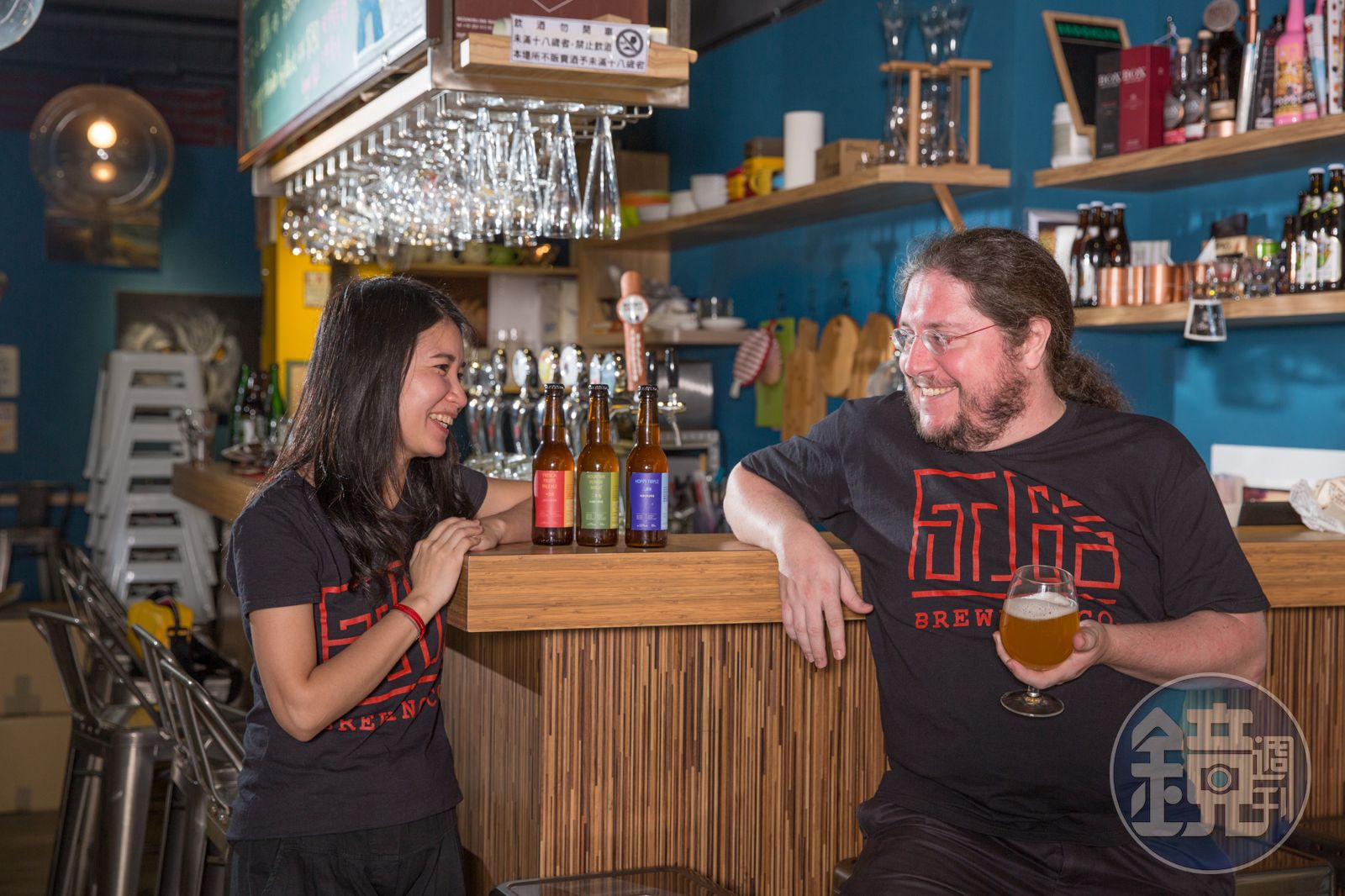 至於為何要取作「福爾摩沙」?當然是因為一路陪伴他的太太施瑞瑄。1999年,到法國唸書的施瑞瑄認識了這個法國大男生,進而相戀,當時Cyril也只是個學生,施瑞瑄後來也返回台灣工作,開始五年的遠距離戀愛,2007年2人決定結婚,Cyril頂下了啤酒專賣店,接著開啤酒吧,施瑞瑄無悔的陪著丈夫栽進精釀的世界。今年是2人結婚10週年,此時推出自有品牌更具意義。Cyril特別針對台灣人的喜好設計了3款啤酒,其中一款「二重奏」小麥啤酒更加入台灣苗栗的山胡椒(馬告)。