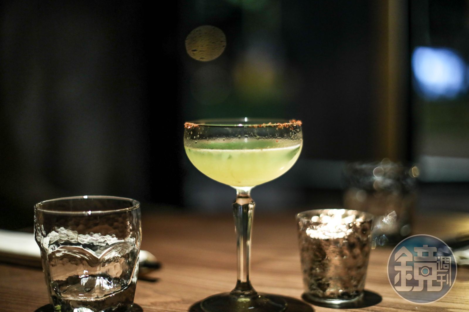 我舉起杯飲下,酸甜清淡的口感在口中漫開,還帶有些許的辛辣香氣,似乎隱藏了一絲苦味。服務生說那是黃瓜苦精跟杯緣的辣椒粉。