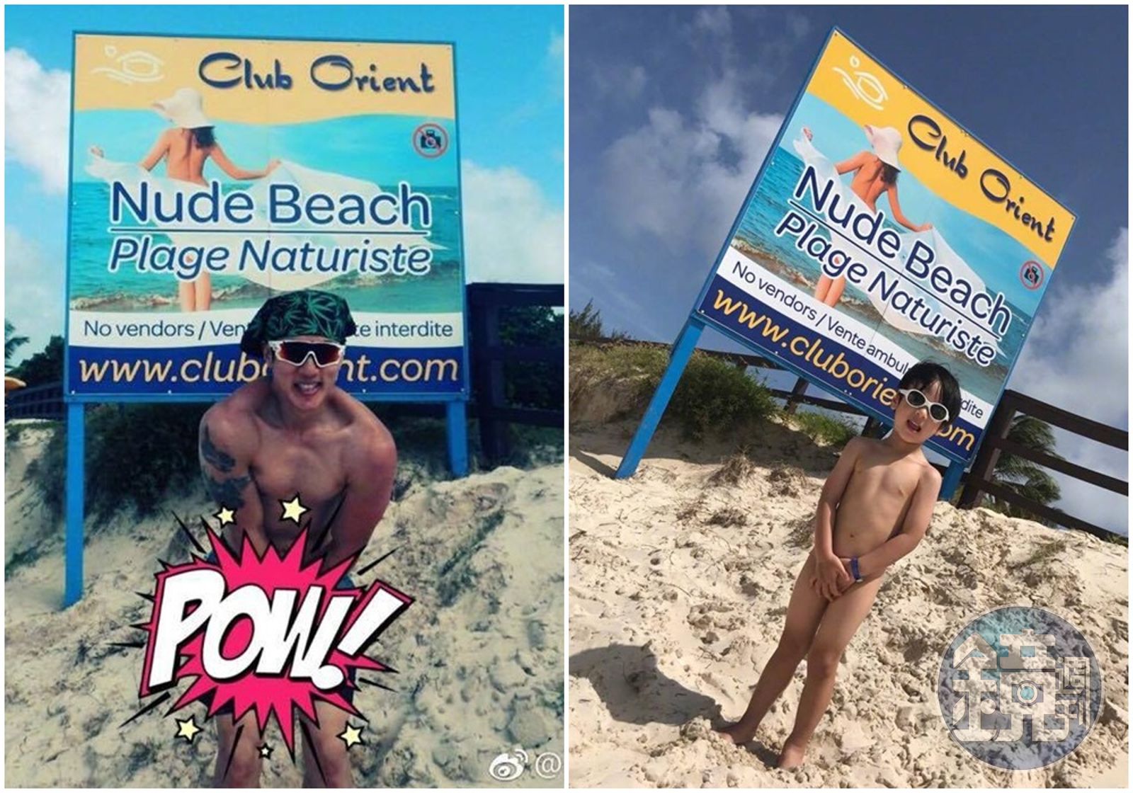 吳尊近日帶兒子到「東方俱樂部」的裸體海灘遊玩,父子倆大膽地全裸入鏡,還在微博PO照,寫道:「wow 全裸海灘 你敢嗎 好吧...我們父子就大擋(膽)來一次吧。」