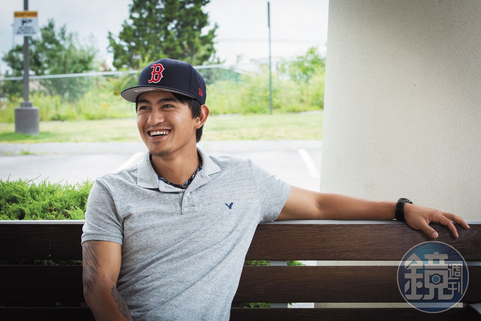 只能看著眼前,像他形容赴美的路,「機票都是往前的,沒有回頭的。」在離「戰場」很近的記者席,我們聽到外國人在問「Lin, Tzu-Wei」的音要怎麼發,也有人在問要如何用中文為他打氣(之後大喊:「甲又!甲又!」)。我們在現場見到亞洲面孔,上前詢問,問到從沒關心大聯盟的退休老師,開5小時車來看他;問到在此地留學,一年最多只看2場比賽的人來看他;還有從新竹來的,帶著一面大國旗,在大大的芬威球場,透過林子偉,站出一塊台灣主場,好像特地來催淚似的。