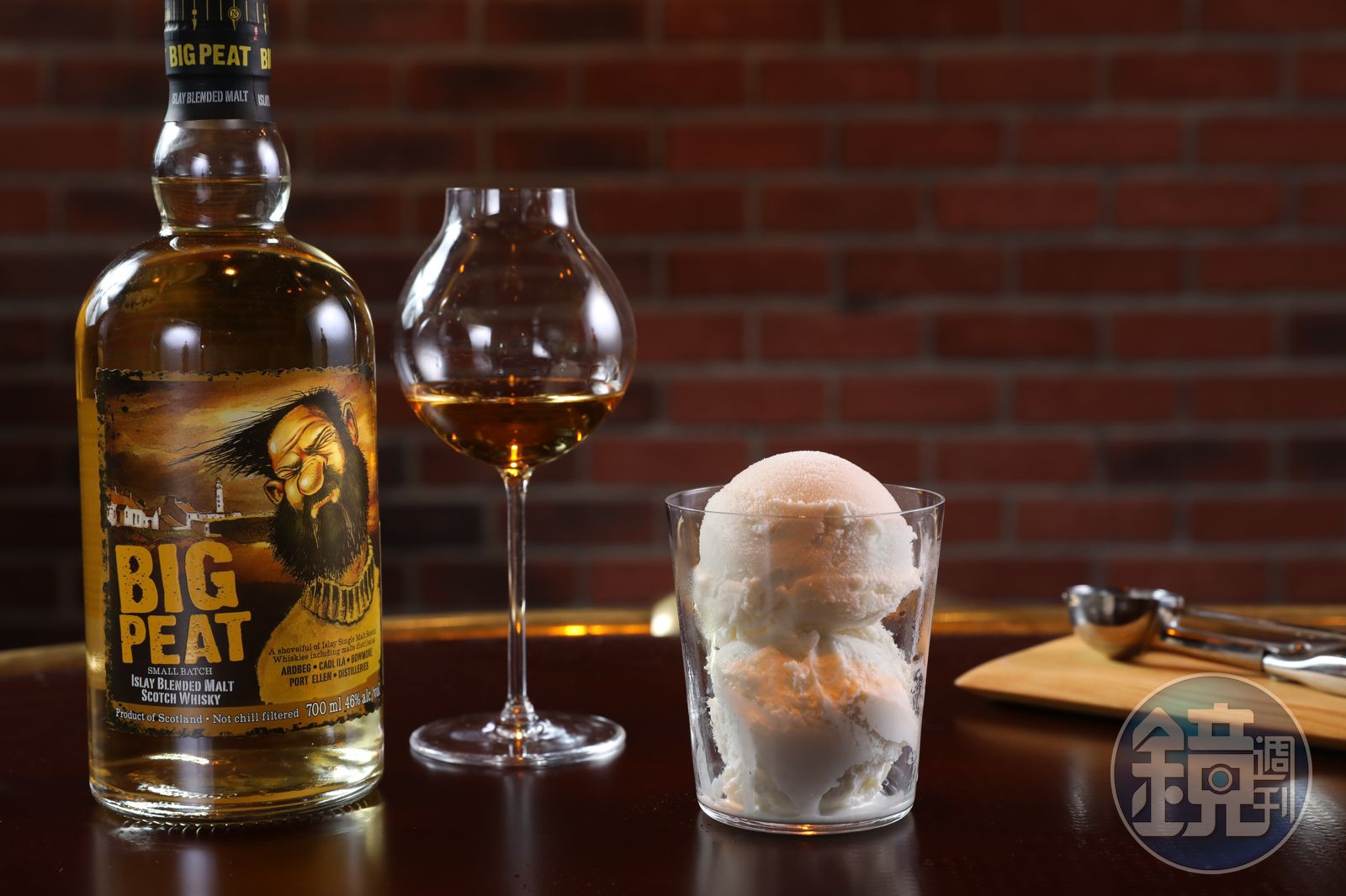 威士忌入冰淇淋,也是天生一對。「泥煤威士忌和冰淇淋很對味。」李素溶這麼形容,蘇格蘭艾雷島(Islay)的泥煤哥Big Peat和義式冰淇淋(Gelato)是完美情人。這支威士忌調混4大天王酒廠的原酒,其中包括已關廠的波特艾倫(Port Ellen),重泥煤味道帶著甜香和海洋氣息,撞上冰淇淋和夏威夷堅果的油脂,在舌尖融化出妙不可言的火花。