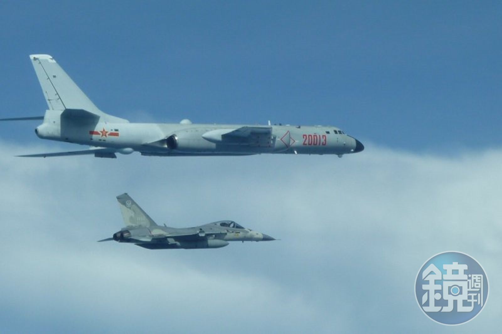 根據國防部發布的照片,可清楚看到編號20013和20119的轟6戰機,其中編號20013的轟6旁是台灣的經國號戰機。