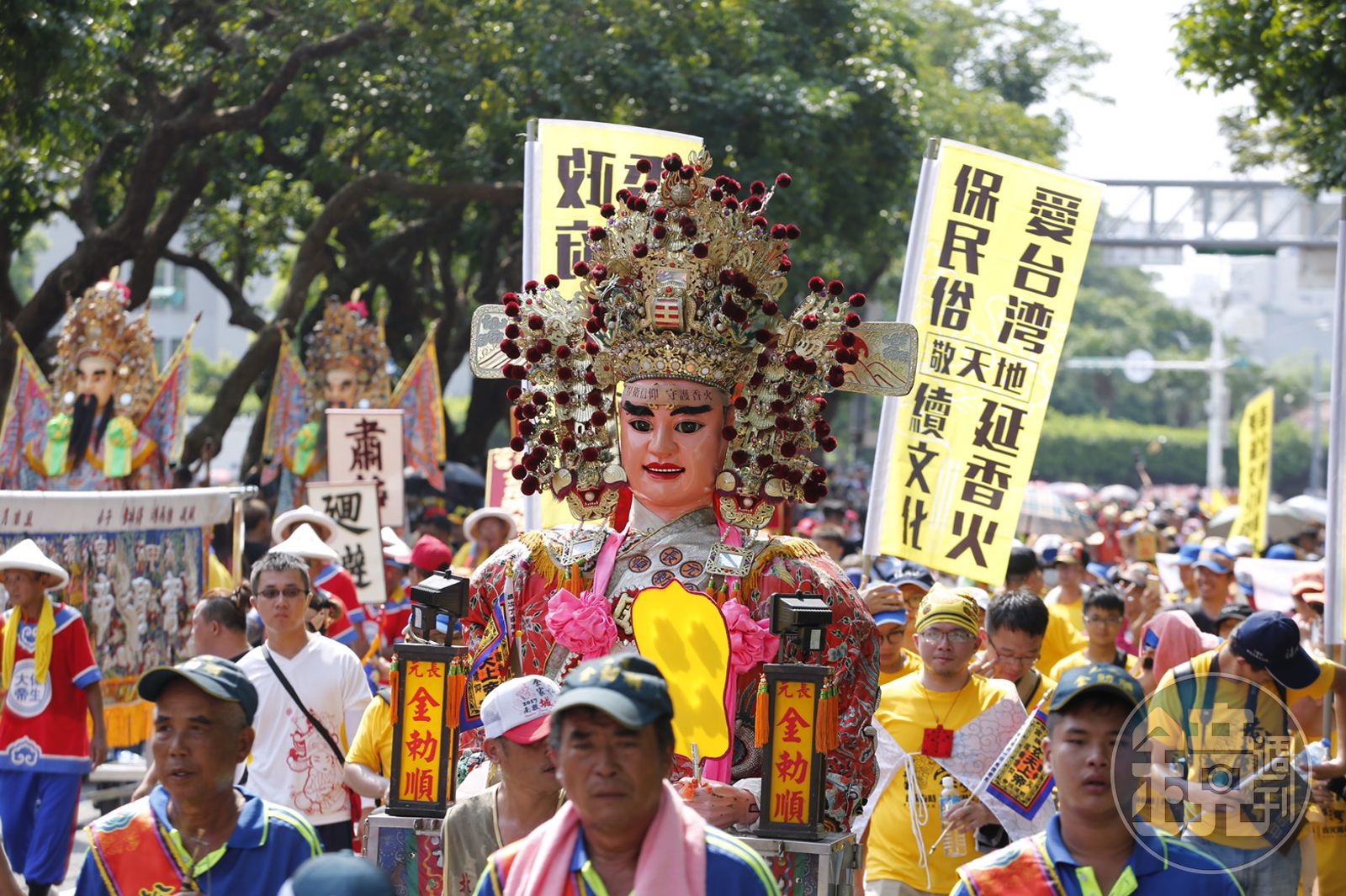 這場「眾神上凱道」繞境活動,起因為各地宮廟不滿環保署推動的環保政策,部分媒體則用「滅香」一詞報導相關新聞,讓宮廟在短時間內串連,遊行隊伍從下午兩點過後,由中正紀錄堂自由廣場整隊出發,沿著中山南路往總統府方向前進,全台超過50家的宮廟鑾轎、神將及旗幟鑼鼓,在凱道熱鬧粉墨登場,發起這項活動的武德宮澄清,一開始就定調是宣揚宗教文化的廟會活動,只希望柔性表達訴求,並不是抗議。