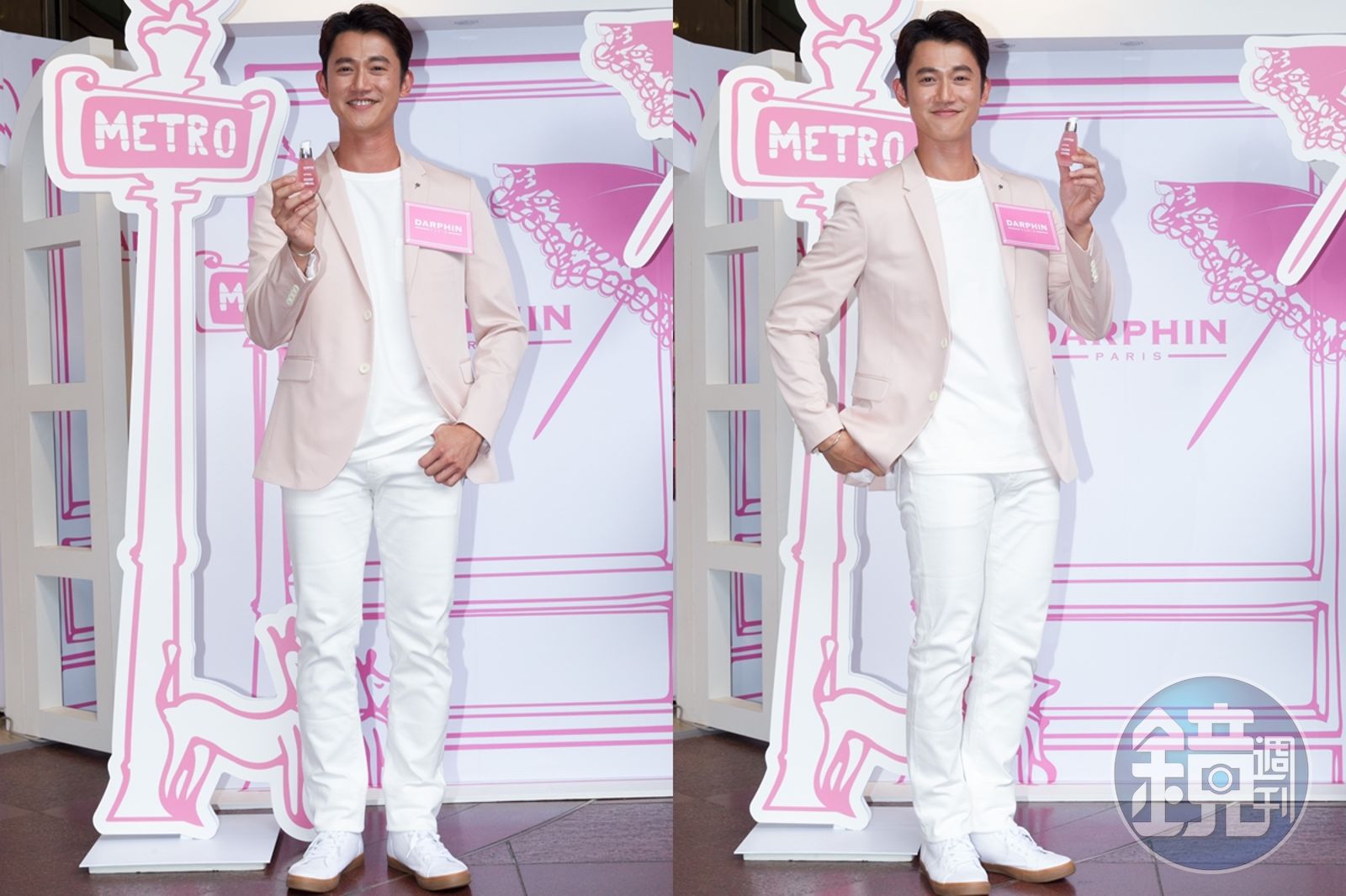 吳慷仁一身粉紅打扮為Darphin 擔任一日店長。發布時間:2017.07.24 17:38 臺北時間