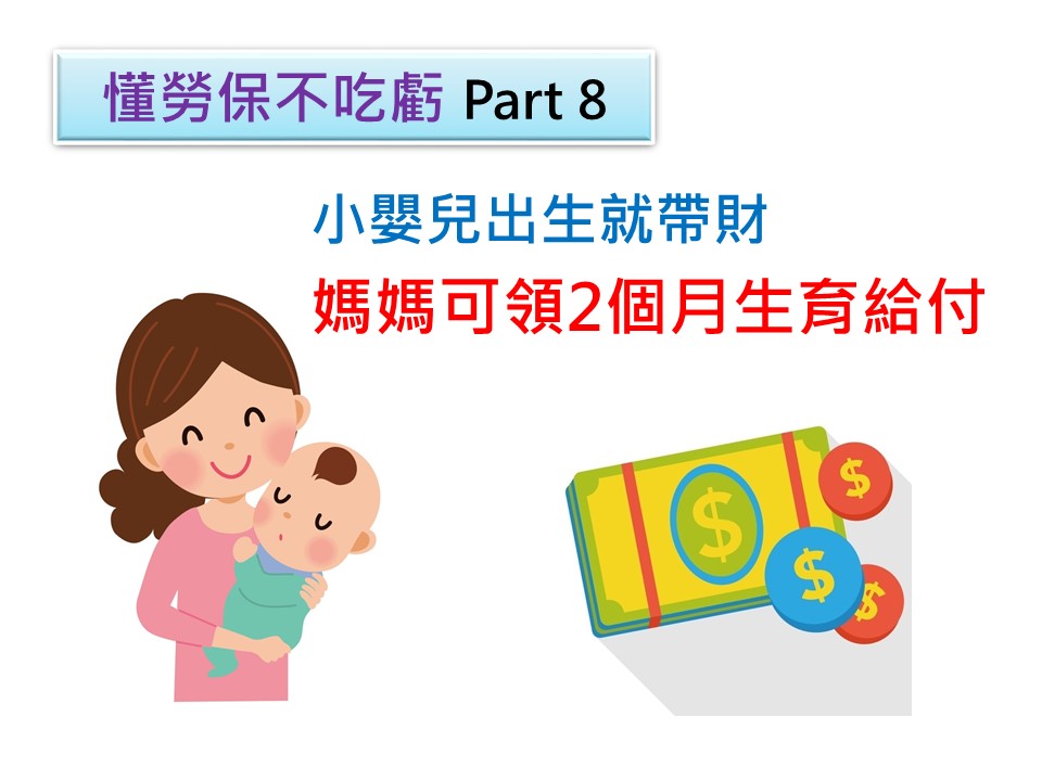 老一輩人常說,小嬰兒生來會帶財,這話一點也沒錯。目前社會保險就有提供生育給付,其中投保人數最多的勞保提供2個月(薪資)的生育給付。
