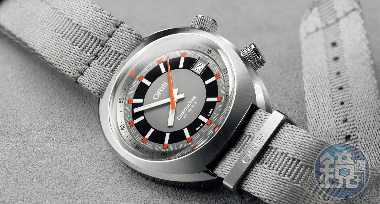 蔡:這種內置式的計時錶圈是以往常見於潛水錶上的設計,它的作用除了可以當做計算氣瓶殘量的輔助工具外,也可以當做簡易的計時碼錶使用(僅有60秒積算),所以稱之為「Chrono」也不為過,可以說是一魚二吃的創意設計呢!