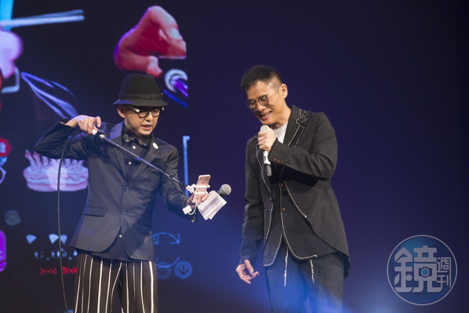 羅大佑跟黃子佼玩自拍,逗樂現場媒體。發布時間:2017.07.25 19:03 臺北時間