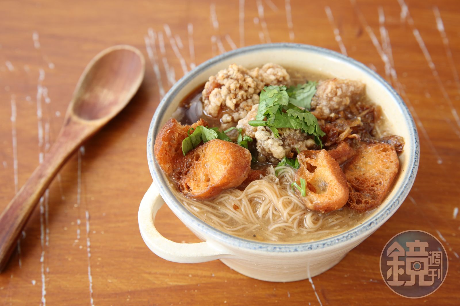 嗜辣的朋友,一定要加一匙老闆用台中「瑞益油行」香油和朝天椒、辛香料炒製的辣椒醬,香辣開胃讓我直想再點一碗,就連油蔥也是自家炒,史奈普笑說:「都我們自己來,快累死了!」
