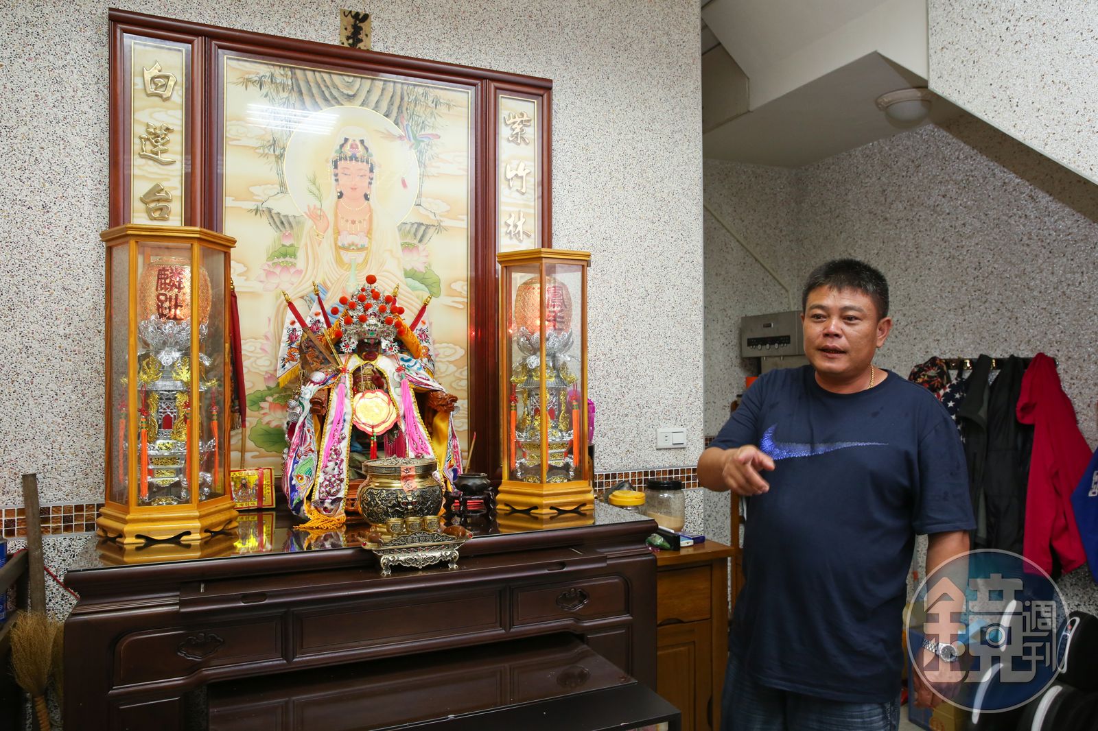 睡眼朦朧的蔡日騰問對方「為什麼要叫我起來?我就是不要!」對方氣得大吼「叫你起來,你就給我起來!」盧了半天,他靈機一動問對方「你是不是缺錢?如果是,我就燒一點給你。」話才剛說完,對方就消失得無影無蹤。