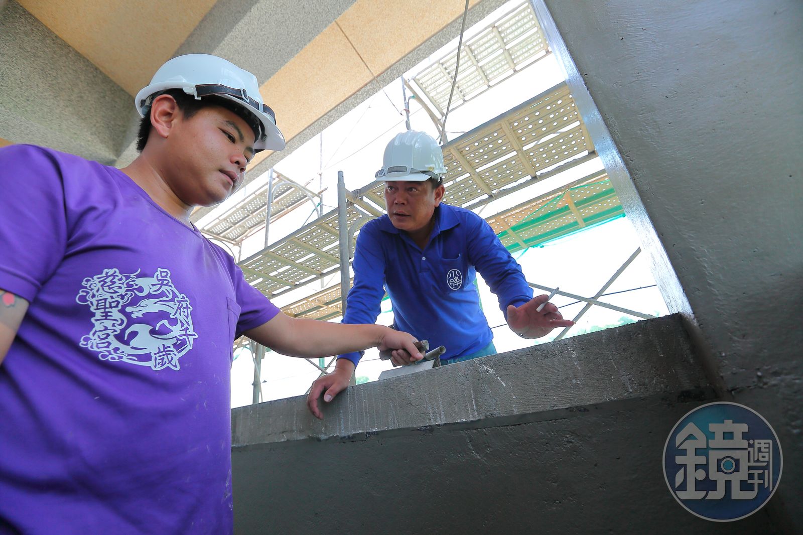 虎父無犬子,今年才21歲的蔡家浤已升格副領班,被年齡大上一輪的叔叔、伯伯級工人戲稱為「副總」,蔡日騰笑說:「副總就是負責所有事情都要做!」父子倆一同共事,蔡家浤話不多,手腳倒是十分勤快,有時蔡日騰得離開工地洽談下一個案子,蔡家浤也能協助工班調度。