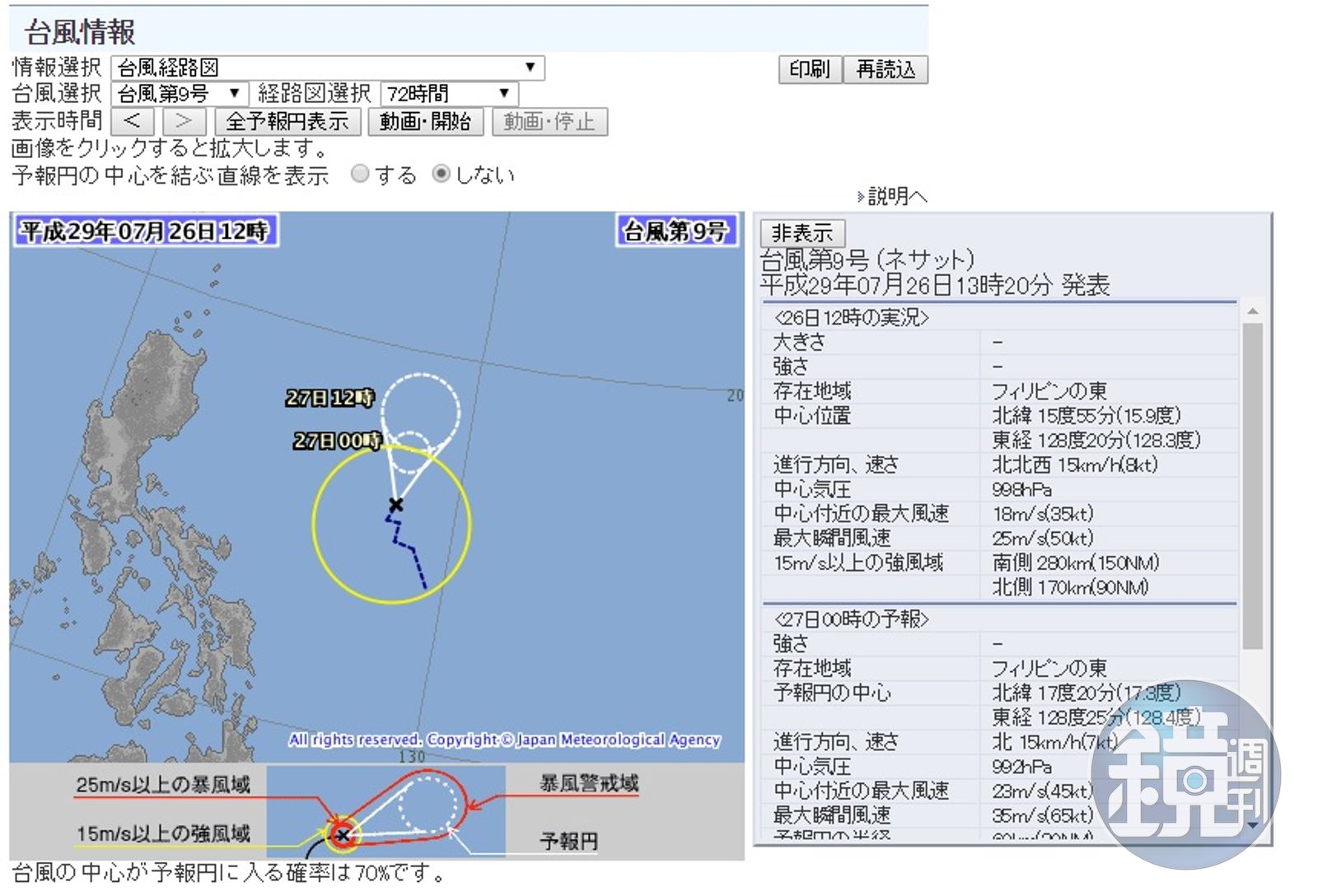 今天下午日本氣象廳正式把位於菲律賓東方的熱低壓定名為第9號颱風尼莎,過去包括歐洲中期天氣預報中心以及美軍的路徑預測都很分歧,直到今天下午正式生成後,預測路徑比較確定,可能會一路向北移動。