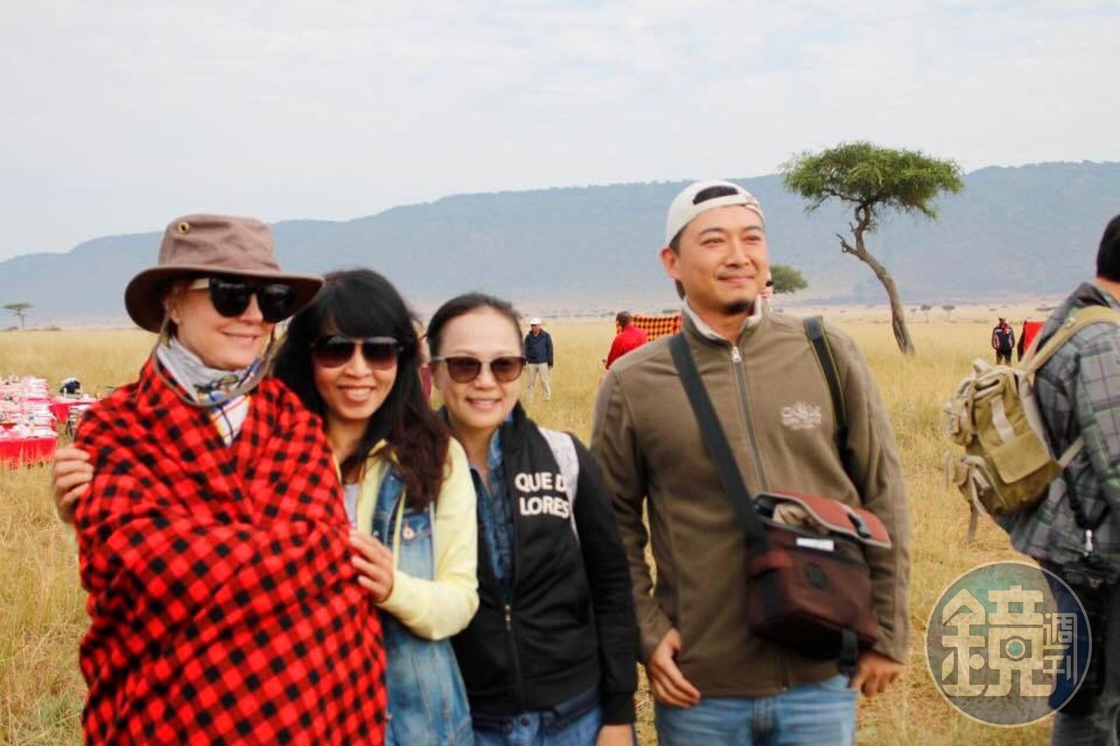 到非洲肯亞旅遊的台灣遊客,眼尖捕獲蘇珊莎蘭登(左一),開心留下合照。發布時間:2017.07.28 07:40 臺北時間