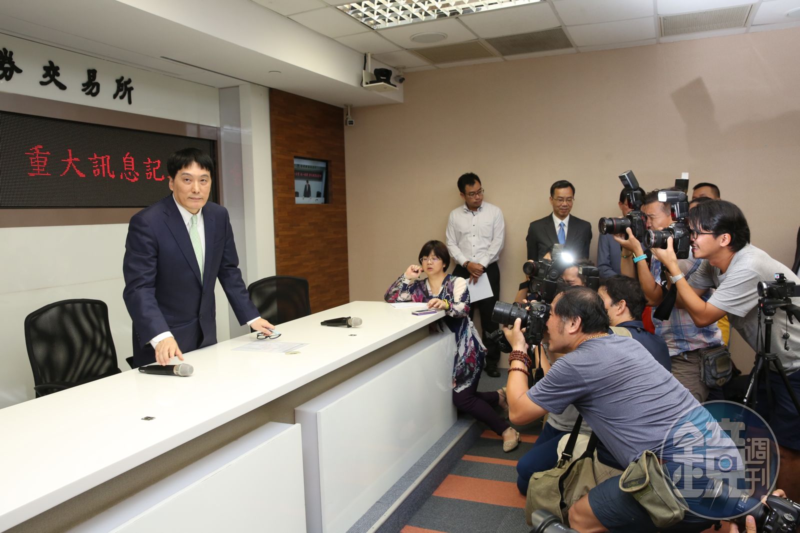 27日晚間7點,證交所擠滿各家媒體,為的就是等待統一、統一超的最新消息,2家公司昨晚雙雙公告今天起暫停交易,外界對此眾說紛紜,為了解開大家疑惑,統一董事長羅智先特別從台南總公司北上,並率領統一企業副總蘇崇銘、統一超副總吳國軒等主管一同召開記者會。