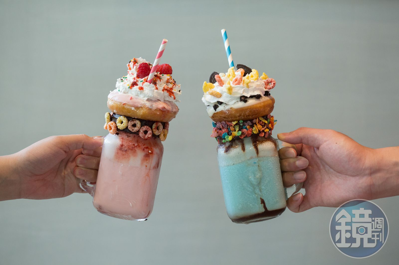 「泡泡糖公主秘境」則是以糖果味冰淇淋和紅色糖漿調出粉紅色奶昔,喝起來有類似跳跳糖的味道;「嫁給我吧蒂芬妮」選用加進蝶豆花的冰淇淋和香草,製成粉藍色的奶昔,味道相對偏甜。