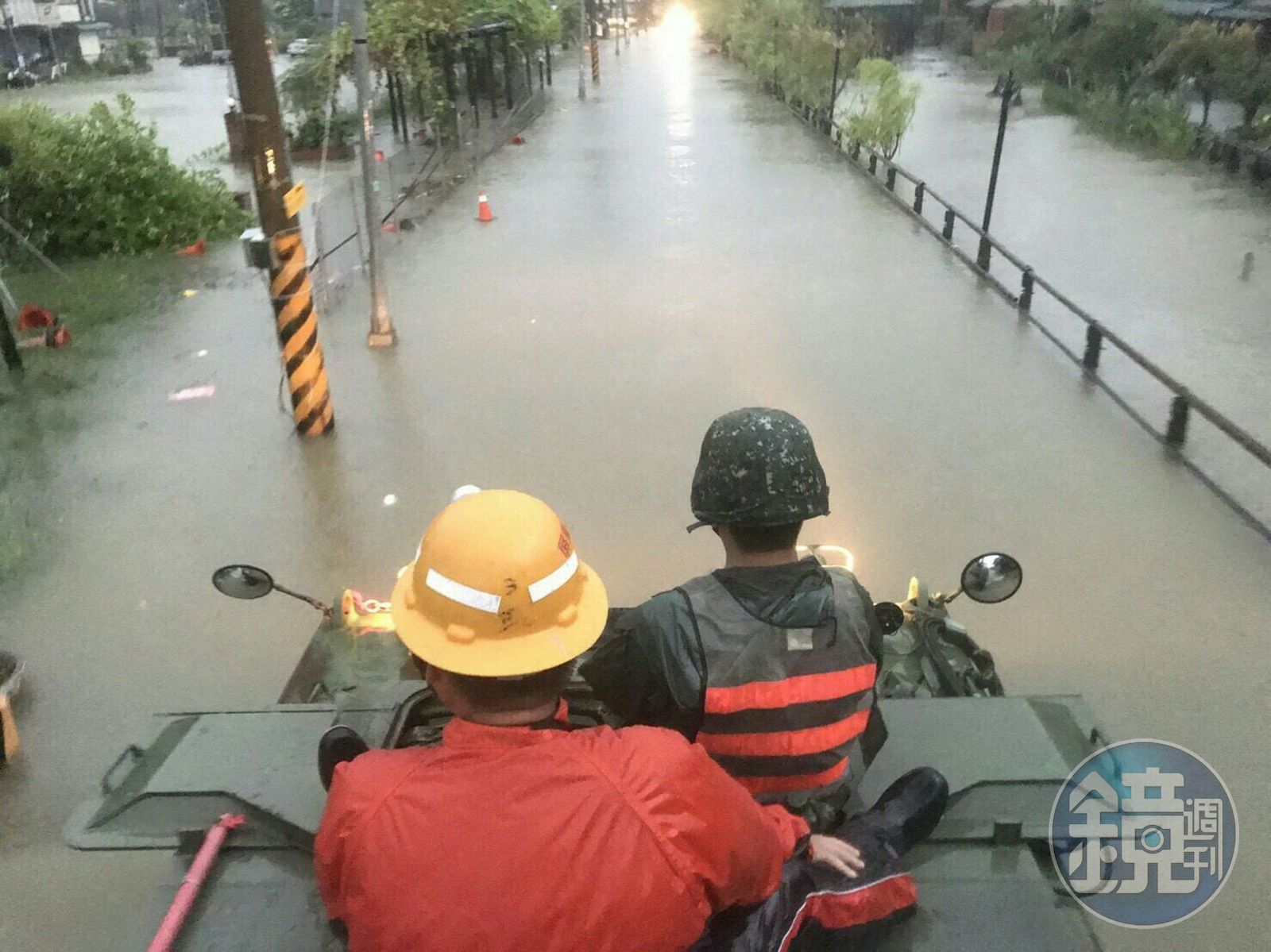屏東地區淹水成汪洋,國軍出動救援。發布時間:2017.07.30 10:23 臺北時間