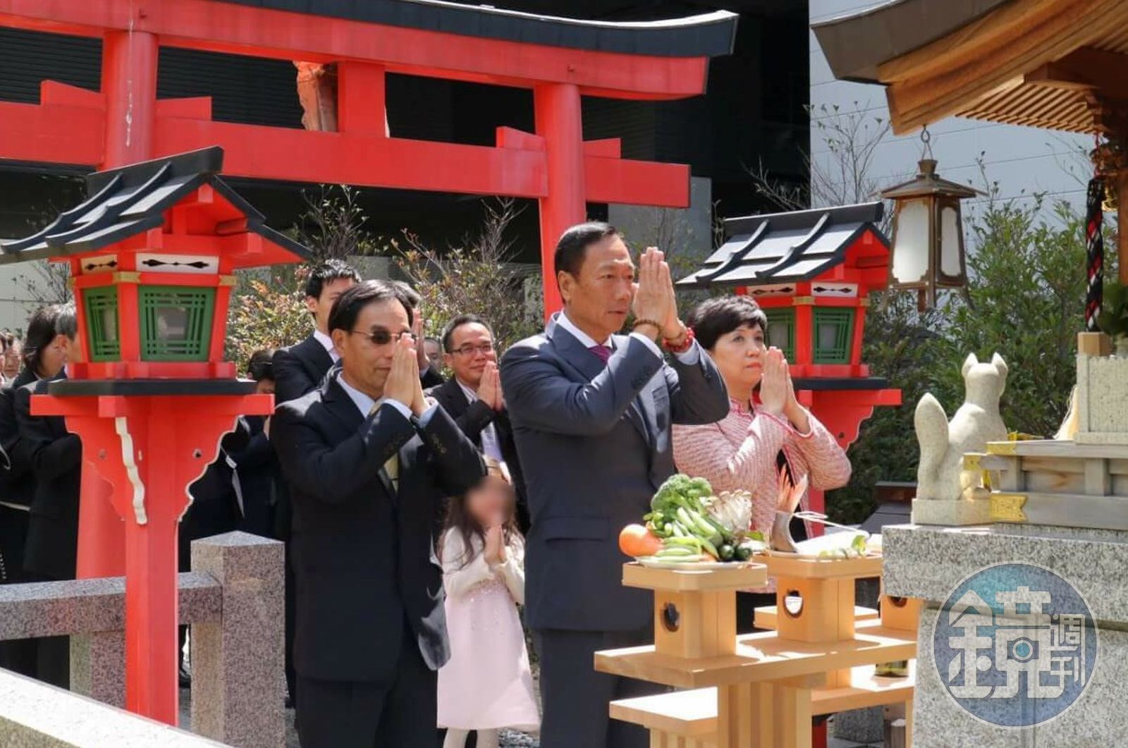去年3月底鴻夏戀在大阪簽約,郭台銘同樣帶著母親初永貞以及妻子、兒女一塊同行,就在記者會當天的早上,郭台銘帶著家人以及黃秋蓮、戴正吳在內的鴻海高階主管一塊在堺工廠內的神社祭拜。