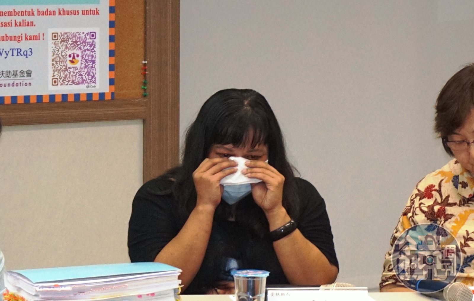 印尼看護工愛雅指出,當時她與很多同胞被仲介要求簽下自願扣款合約,雖然合約有中文及印尼文,但根本無法看完內容,就被迫簽下,還要發毒誓,發誓時還被錄影存證,她用中文激動地說:「我是一個女傭、一個外勞,誰都不認識,能怎麼辦?」