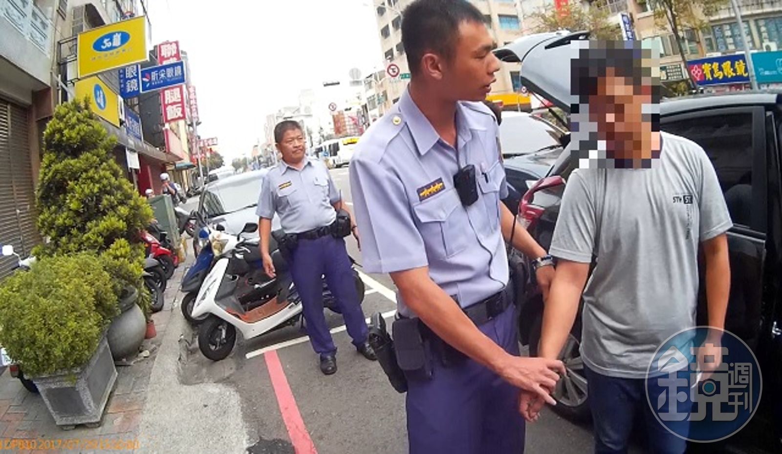 清水分局長郭順德指出,員警黃譯緯29日下午休假時,在清水區中山路、鎮南路看到一部黑色休旅車停在便利超商前,一名少年下車進入ATM提款機前操作,但沒領錢就上車離開,黃員察覺有異,騎機車跟隨黑色休旅車,果然對方下一站停在郵局放少年下車操作提款機,這時他已經確認是車手集團,於是趕緊通知值班同仁前來支援。