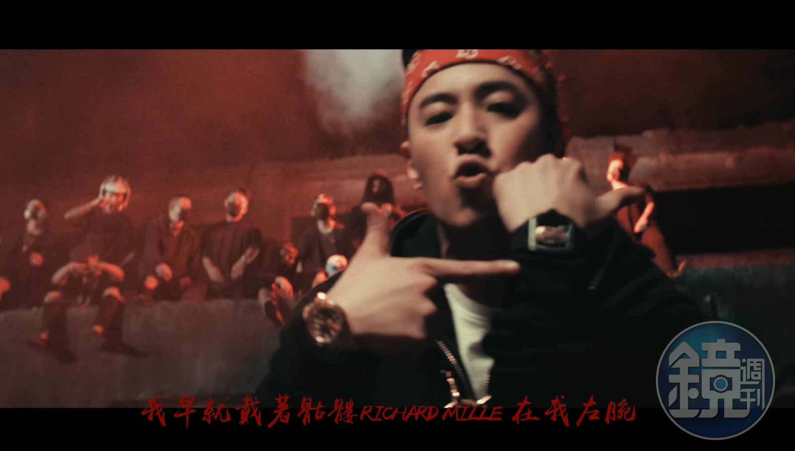 潘瑋柏在上方的新歌影片裡唱著:「人們急著chase the money 尋找安全感,我早就戴著骷髏 Richard Mille 在我左腕。」