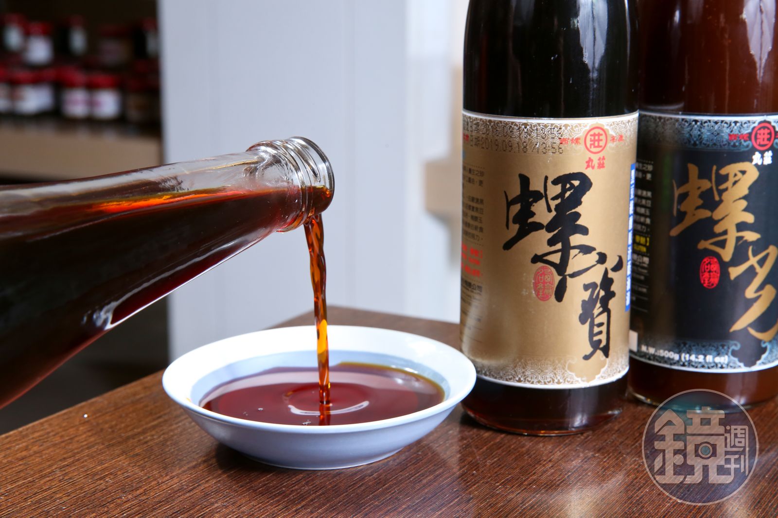 醬油會開始用透明玻璃瓶裝,原來是個無心插柳。莊英堯記得,曾有果汁工廠訂做440c.c.透明瓶子,「那是聖誕老人天然果汁,生意差它收起來不做了,倉庫剩下好幾萬個瓶子沒人用,我爸爸就想要,所以他全部買下。」