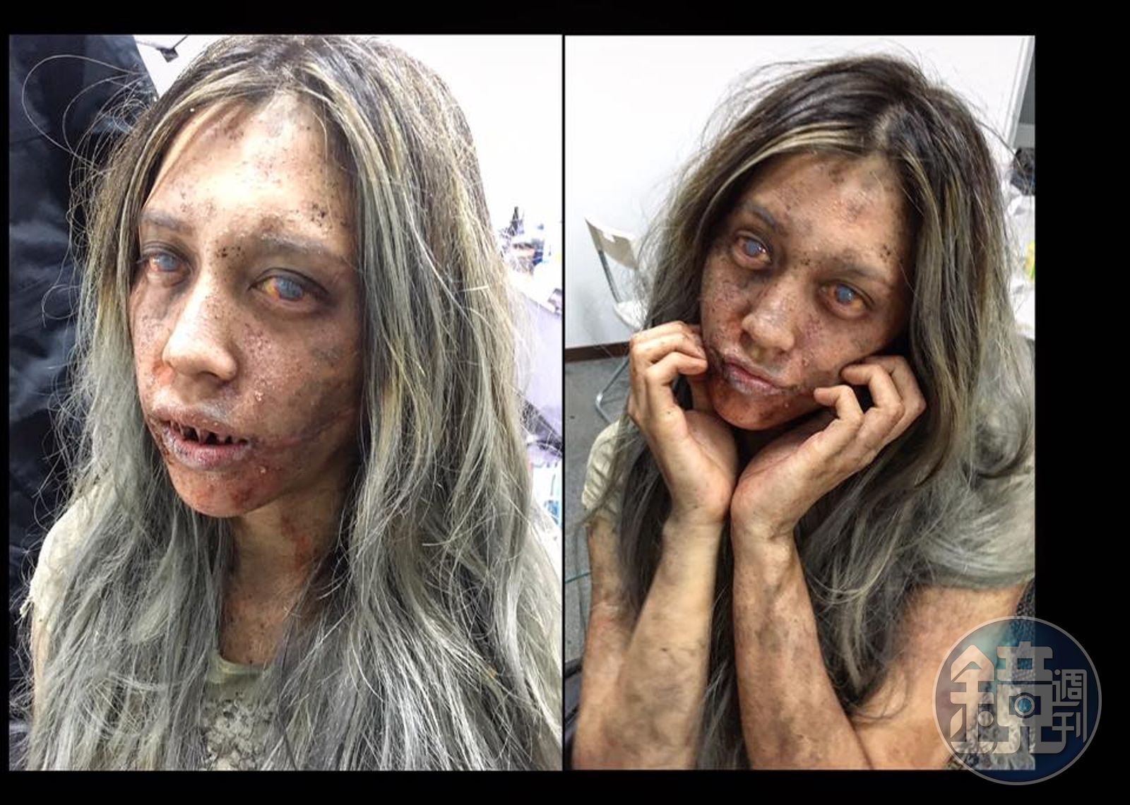 劉奕兒還解答眼球之謎:「這是一個無敵巨大的隱形眼鏡,要把眼皮掀開才塞得進去,而這個完全獸化版的大怪眼球,整顆是綠色的,只有中間一個小洞洞可以看出來,其實是看不太清楚的,都是靠身體的觸覺、聽覺、嗅覺,以及百分之兩百的專注力,而變身大怪物完全獸化版的最後一個步驟,就是套上一排尖尖腐爛的牙齒,走到現場,上鋼絲,接著⋯準備開戰!」