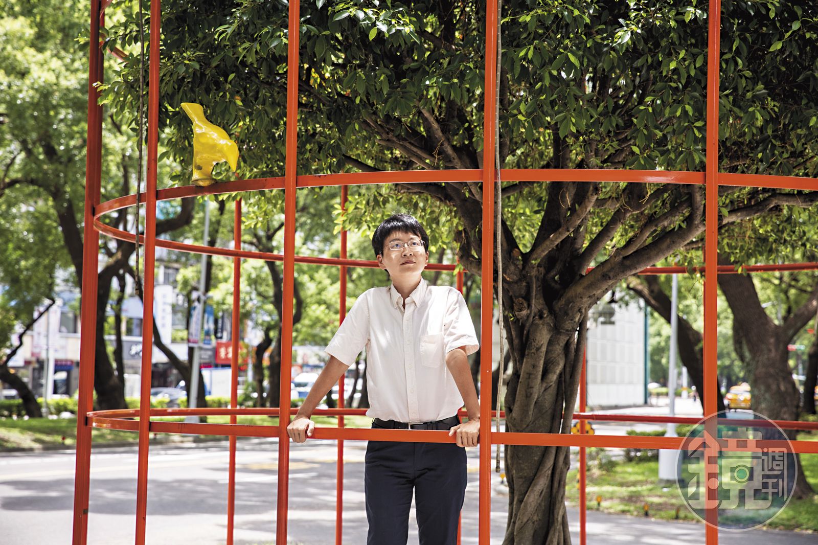 我們來到他辛亥路的家門口拍照,他們一家都是愛貓人士,屋內外十多隻貓自由進出。他從小生長在貓家庭,對貓不似對人保有距離,「我對貓比對人好,是大家都知道的事。」看到橘貓臨臨,他終於卸下拘謹的外貌,輕柔把牠捧在懷裡露出少女般微笑,溫柔的眼神充滿父愛。他說,不知為何想當一個女兒的爸爸,這一刻,我看見了答案。