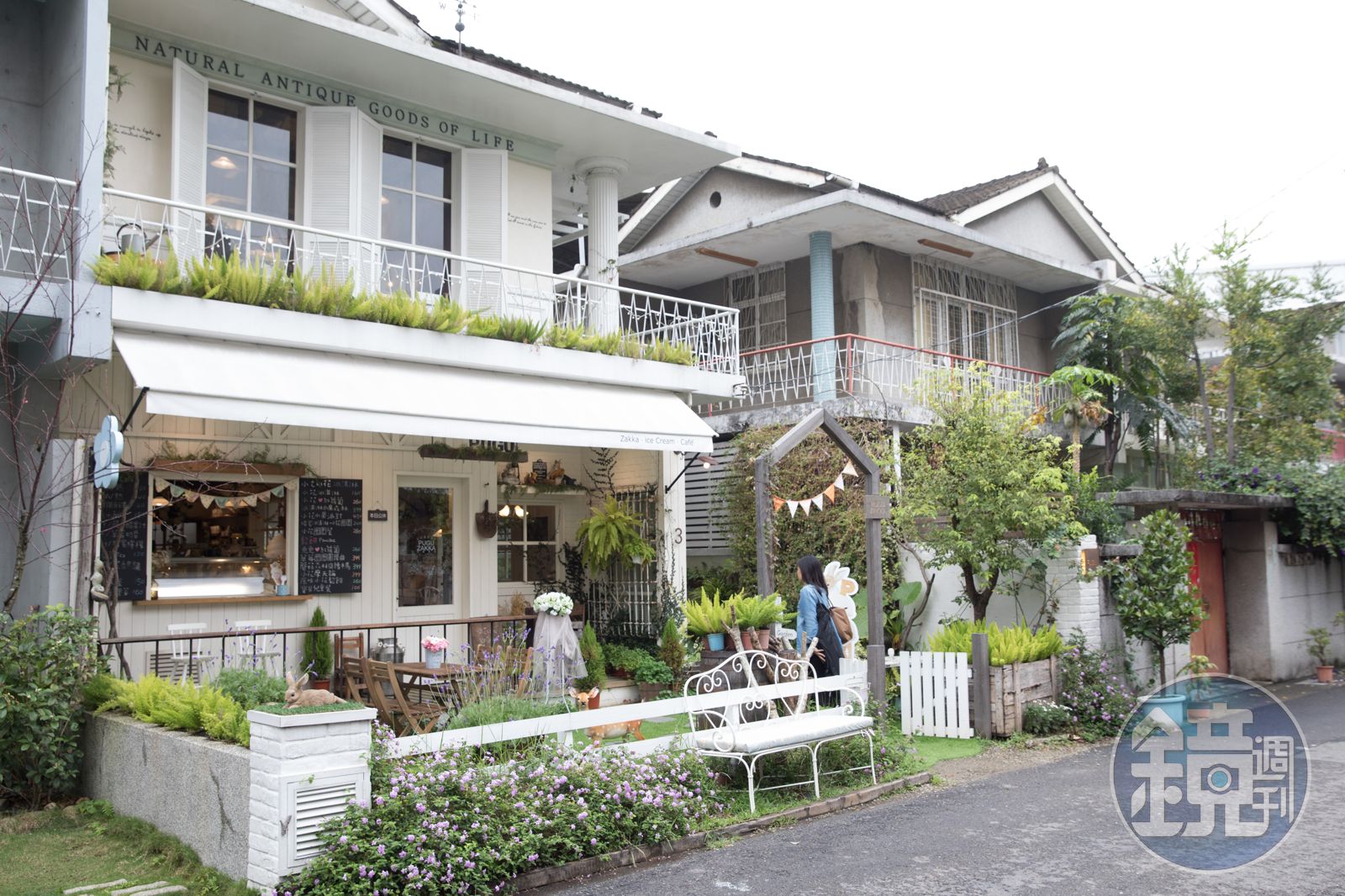 手拿冰淇淋在森林系「PUGU田園雜貨」的庭院實在超好拍,但在庭院對面的成排貨櫃屋,也召喚我們快去拍照打卡。
