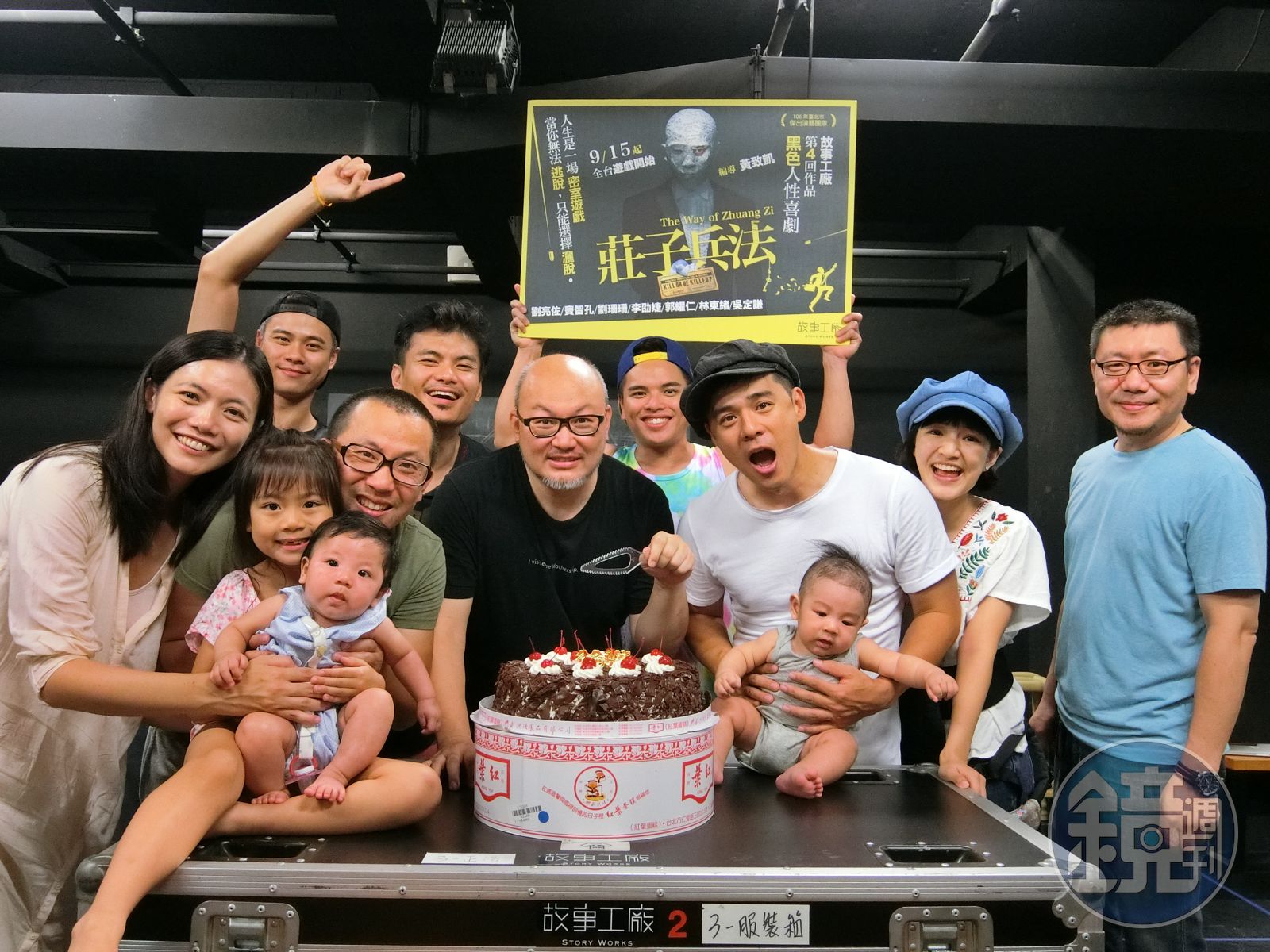 竇智孔老婆幃幃抱著兒子竇大福探班《莊子兵法》舞台劇的排練現場,幃幃當著竇智孔的面甜喊:「辛苦了,父親節快樂。」竇智孔今年3月才當爸爸,雖然他常說人生路上,有了老婆兒子真好,但他說今年對父親節還沒特別感覺,「還在習慣當爸爸,還在習慣父親節這3個字。」