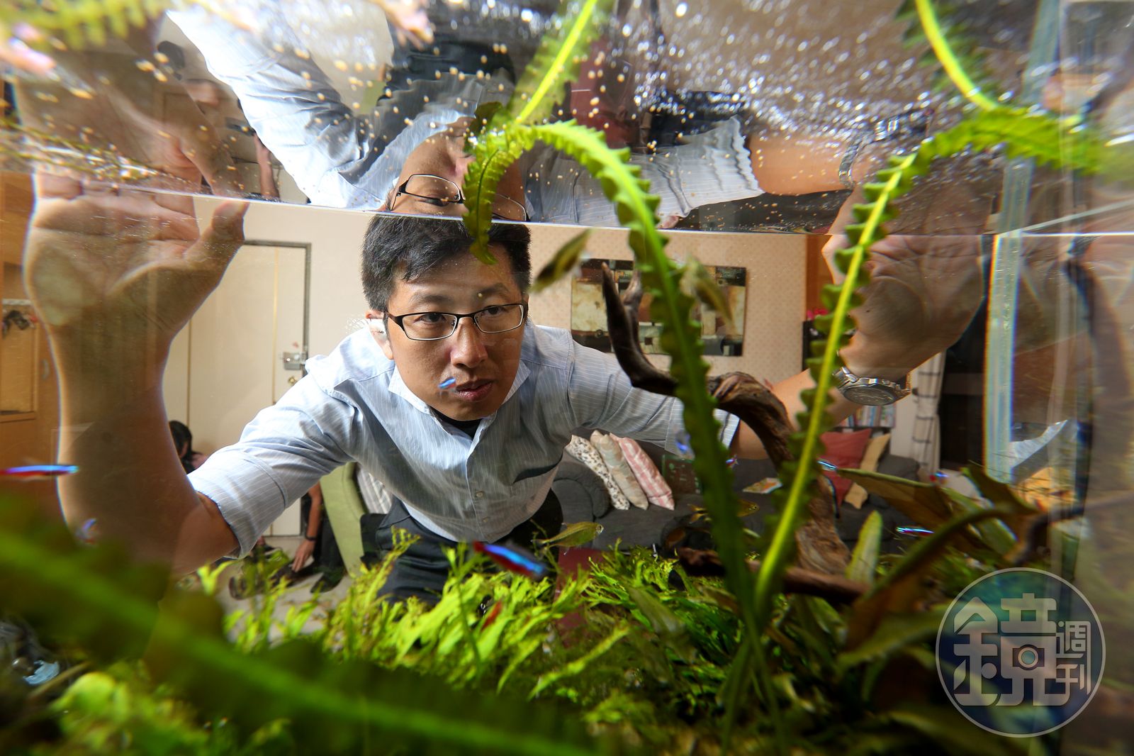 聊起股魚的養魚經,一旁的太太笑說,「婚前他常一個人跑到郊外釣魚,極有耐心,喜歡那種把魚釣上來的成就感,婚後我跟女兒不喜歡陪他去釣魚,隨口提議可以養魚,這一起頭,家裡的魚缸就越換越大了。」