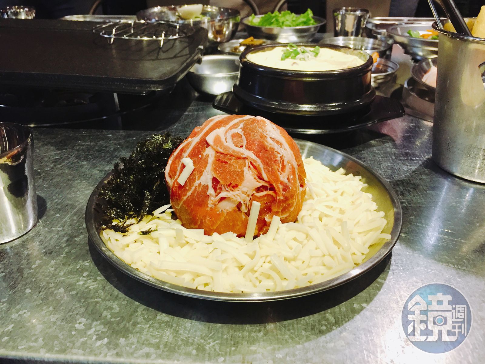 仔細看菜單,還有老闆的創意料理,最具代表的菜色當屬「泡菜肉彈」,Eason說:「就連金姨母都很驚訝,原來還可以這樣吃哦!」韓國人吃完烤肉總愛把剩餘配料,加上起司就著鐵板炒出一盤金黃色炒飯。