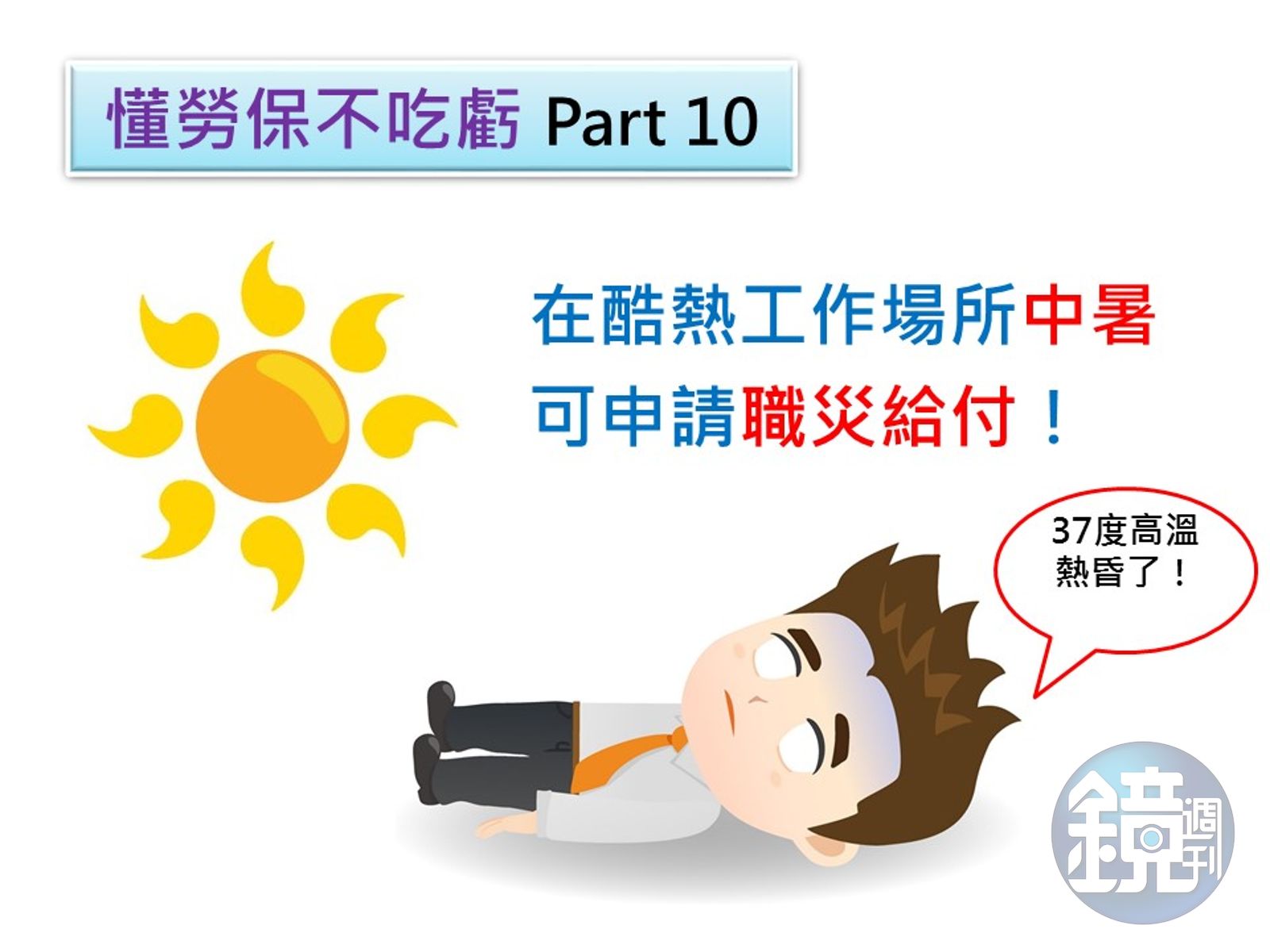 其實,像是經常在大熱天負責騎機車外送餐飲的工讀生,也享有勞保權益,萬一不慎中暑,也可以請領職災給付;通常罹患日射病,輕症可能得看門診,重症甚至得住院,到底這類職災給付包括哪些內容?又該如何申請?看完以下11張圖文就能一次搞懂囉!