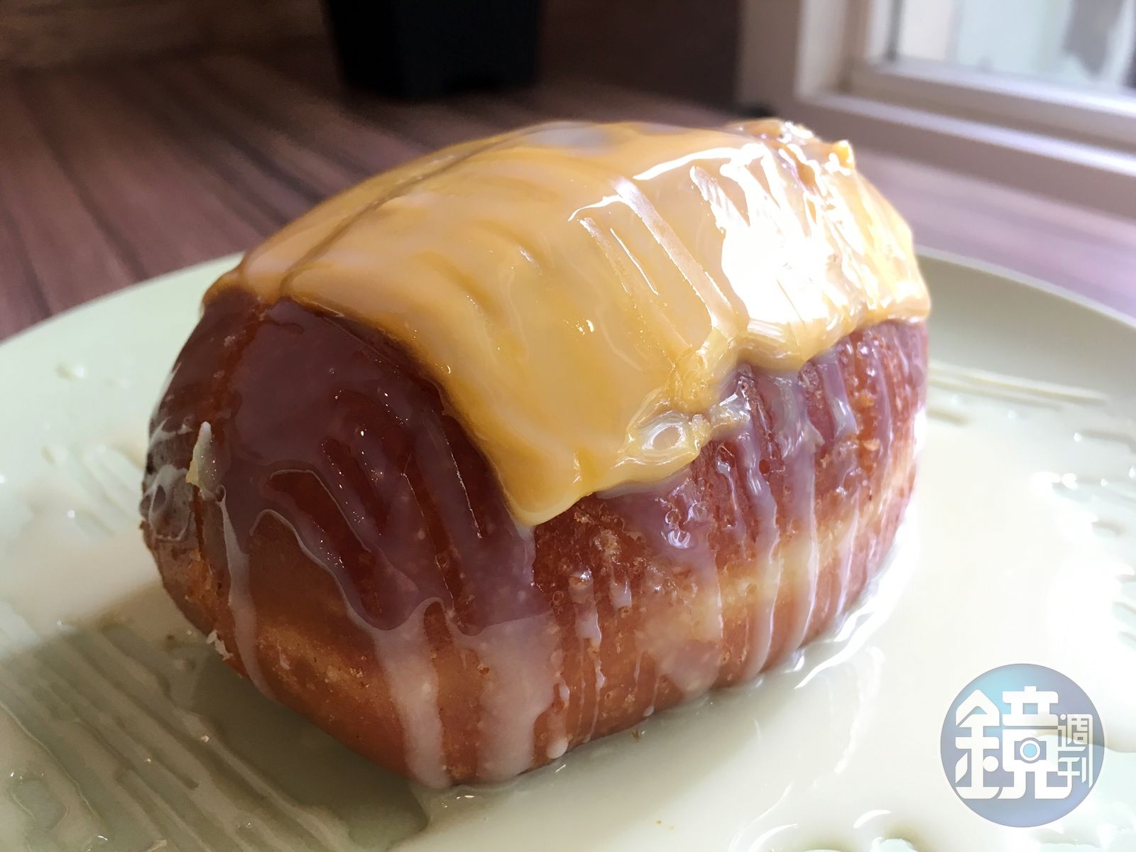 炸到金黃酥脆的手工饅頭,在上頭擺片起司,還要再放進烤箱,把多餘的油給逼出來,最後淋上香甜煉乳,口感甜甜鹹鹹,滋味好療癒啊!