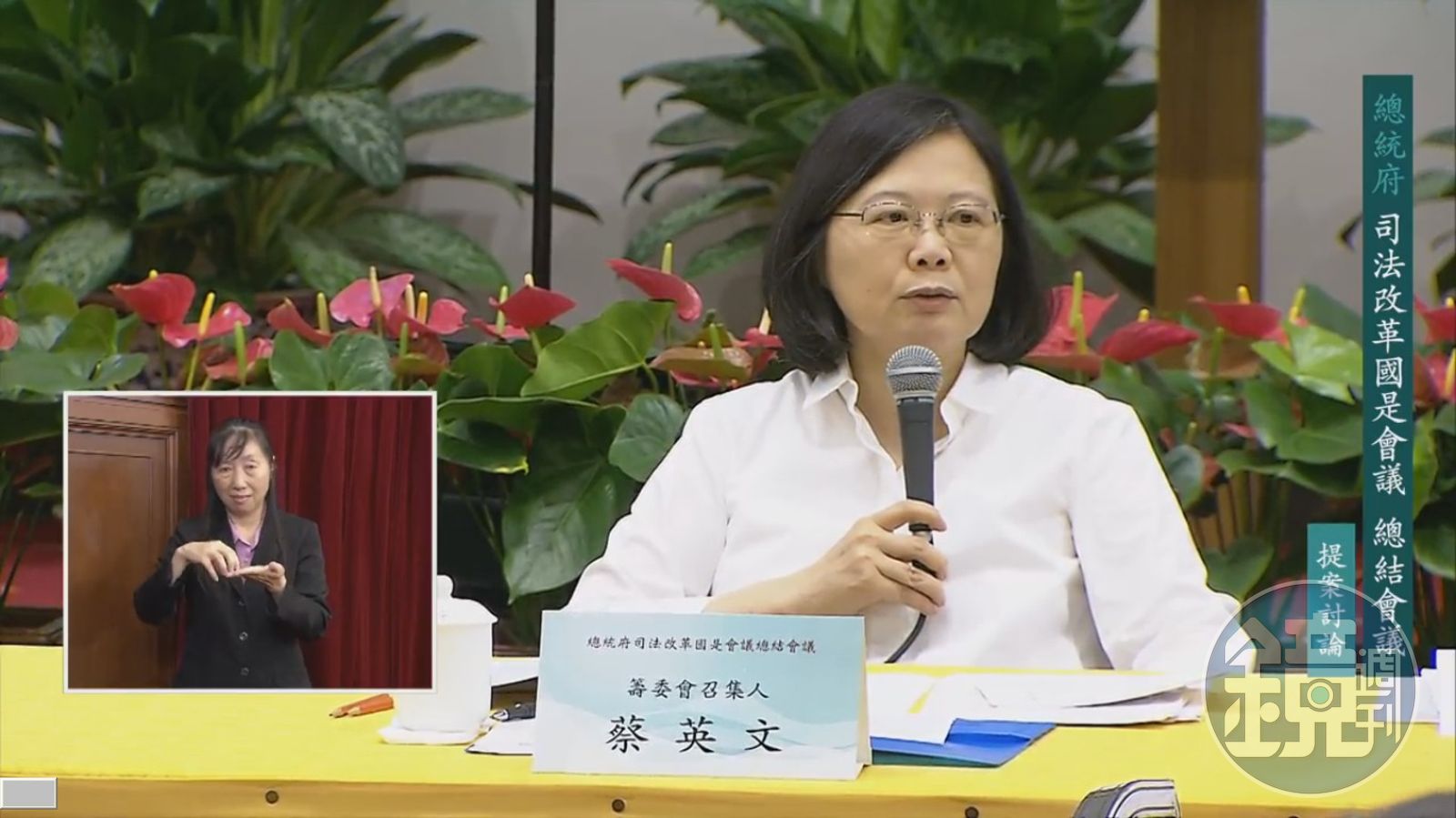 蔡英文在聽完林孟皇與陳俊宏報告說明後說:「我的看法通過第一案,如果大家可以接受,過第一案」,有委員立即說:「原案推翻嗎?」蔡英文笑著回應:「對對對,我被推翻了,不用不好意思」,後來表決,讚成票只有44票,蔡英立即說,你們在搞什麼啊!另針對第2案表決,只有25票,蔡英文反問,你們打算怎麼辦?最後進行第3及第4次表決,針對是否修正最高法院任命案進行投票,以66票通過修正,總統對最高法院法官僅有形式任命權。