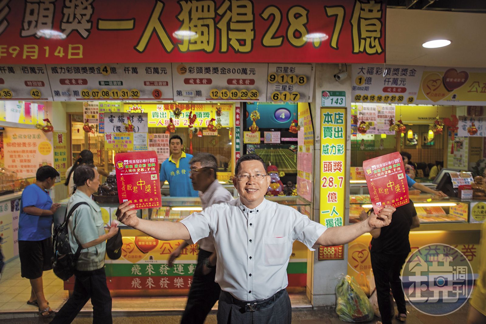 從愛國獎券到公益彩券,累積賣出20多次頭獎的黃有忠,每日華燈初上,都在店裡盯場,看頭看尾之餘,他亦參加五星級飯店俱樂部,認識許多上市櫃公司的老闆,廣結善緣,政商關係不錯。