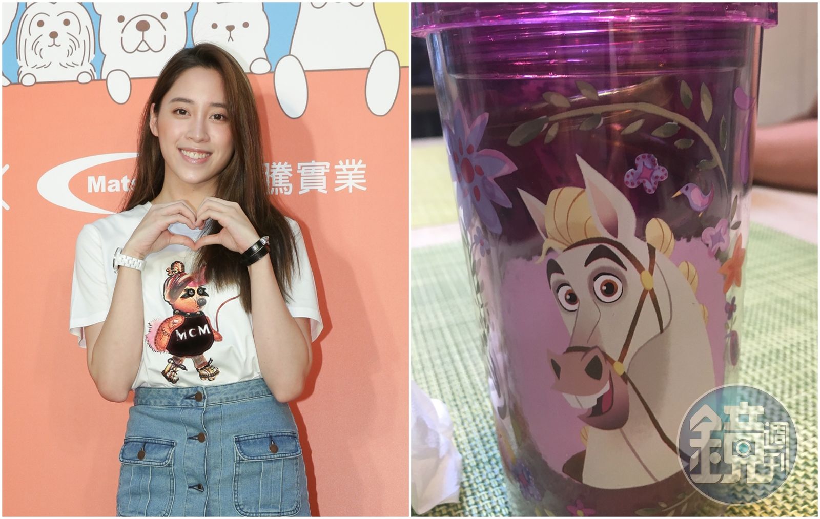 當記者問她怎麼會用這麼可愛的杯子?她笑說因為每部迪士尼的動畫她都看過,尤其最愛《仙履奇緣》,接著大家又討論到皇家馬麥西瑪斯真的很可愛,她突然露出賊賊的笑容說:「你不覺得這匹馬長得跟我姊姊很像嗎?」此話一出,大伙哄堂大笑,連忙再比較一下歐陽妮妮和皇家馬的相似處。