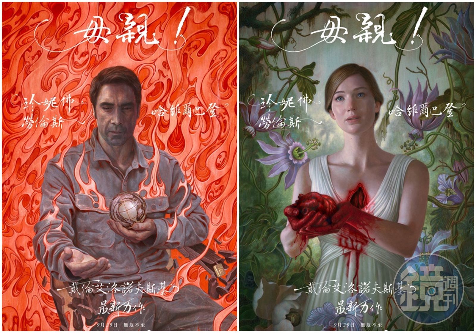 戴倫艾洛諾夫斯基(Darren Aronofsky)將電影的詭異風格,不僅延續到預告片的弦樂上,連電影海報也不放過。他以雕塑家潔西卡哈里森(Jessica Harrison)的作品為靈感,創作出十分詭異的海報。乍看之下是溫馨,仔細一瞧又是詭異,替電影本身製造不少好奇心。