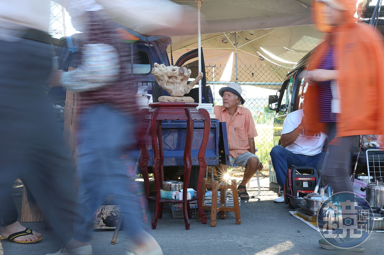 我們跟魏德松帶狗到竹北的動物醫院結紮,等待結紮的空檔,他帶我們到橋下、他稱之為「秘密基地」的地方休息。他彷彿裝內建廢棄物雷達,走到哪都能發現空瓶罐。他隨地撿來麻布袋,在橋下草叢撿碎玻璃、空酒瓶,很快就裝滿一袋。他不戴手套、不用夾子,徒手撿碎玻璃,我忍不住如家人一樣擔心他,他悠悠說:「撿玻璃不能急著撿,小心拿,它不會咬你。」粗獷的舉止卻帶著細膩的心思。