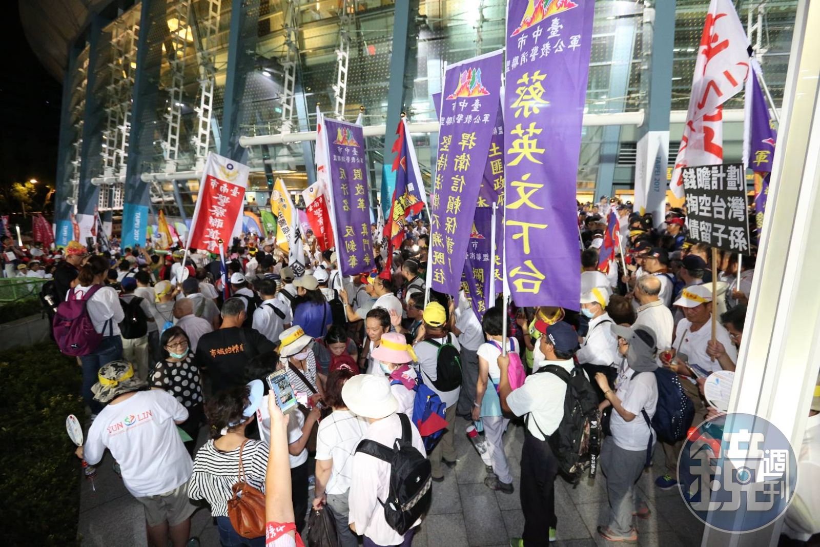 據現場傳聞為反年改人士與反反年改人士爆發衝突,在小巨蛋、台北田徑場現場與維安人員爆發抗議衝突,讓進場的隊伍攔腰截斷,在活動受到引起抗議事件干擾下,讓主辦單位一度取消選手繞場。世大運發言人楊景棠簡短表示,年金改革陳抗團體在小巨蛋周遭陳抗,將選手入口堵住,選手各代表團長希望排除後再行出場。