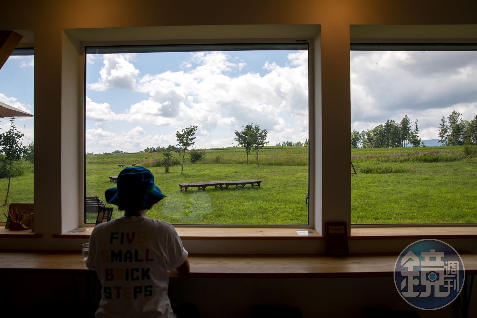 到訪美瑛,美好的小店絕對不該錯過。舊小學校舍改建成的法式料理餐廳「Restaurant Bi-Ble」,此時正逢向日葵花開時節。餐廳坐落在整片黃色中央,彷彿飄在向日葵花田裡。還沒進入餐廳,就讓我在路邊呆看了好久。