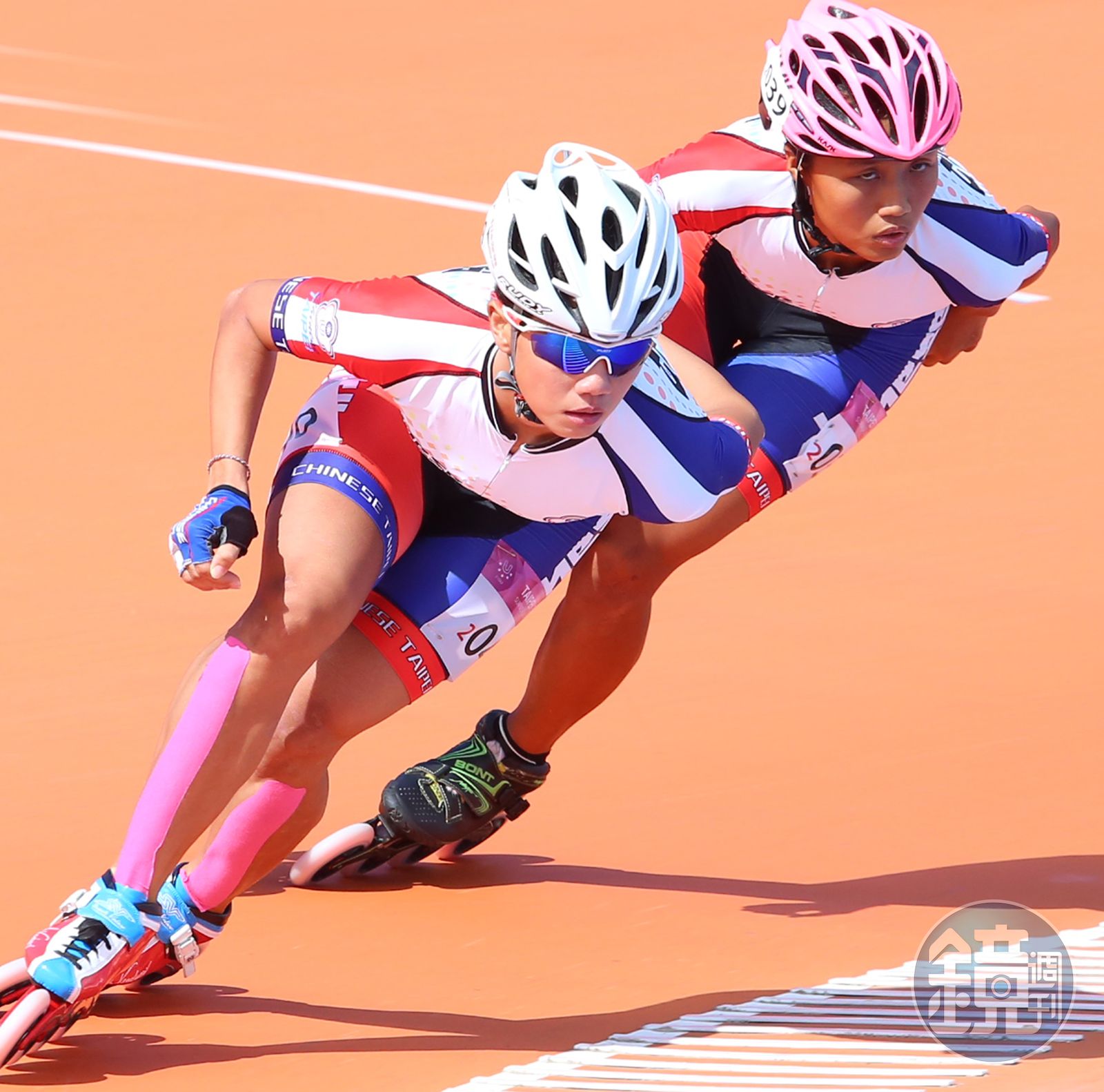 台灣女將楊合貞再奪一金。(圖:台北世大運組委會提供)今天登場的滑輪溜冰項目女子1萬5千公尺決賽,由台灣好手楊合貞、李孟竹續參加,楊、李2人再度發揮合作無間精神,楊合貞以26分57秒916摘金,李孟竹以26分58秒034奪銀,擊敗哥倫比亞好手,為台灣再度金包銀。