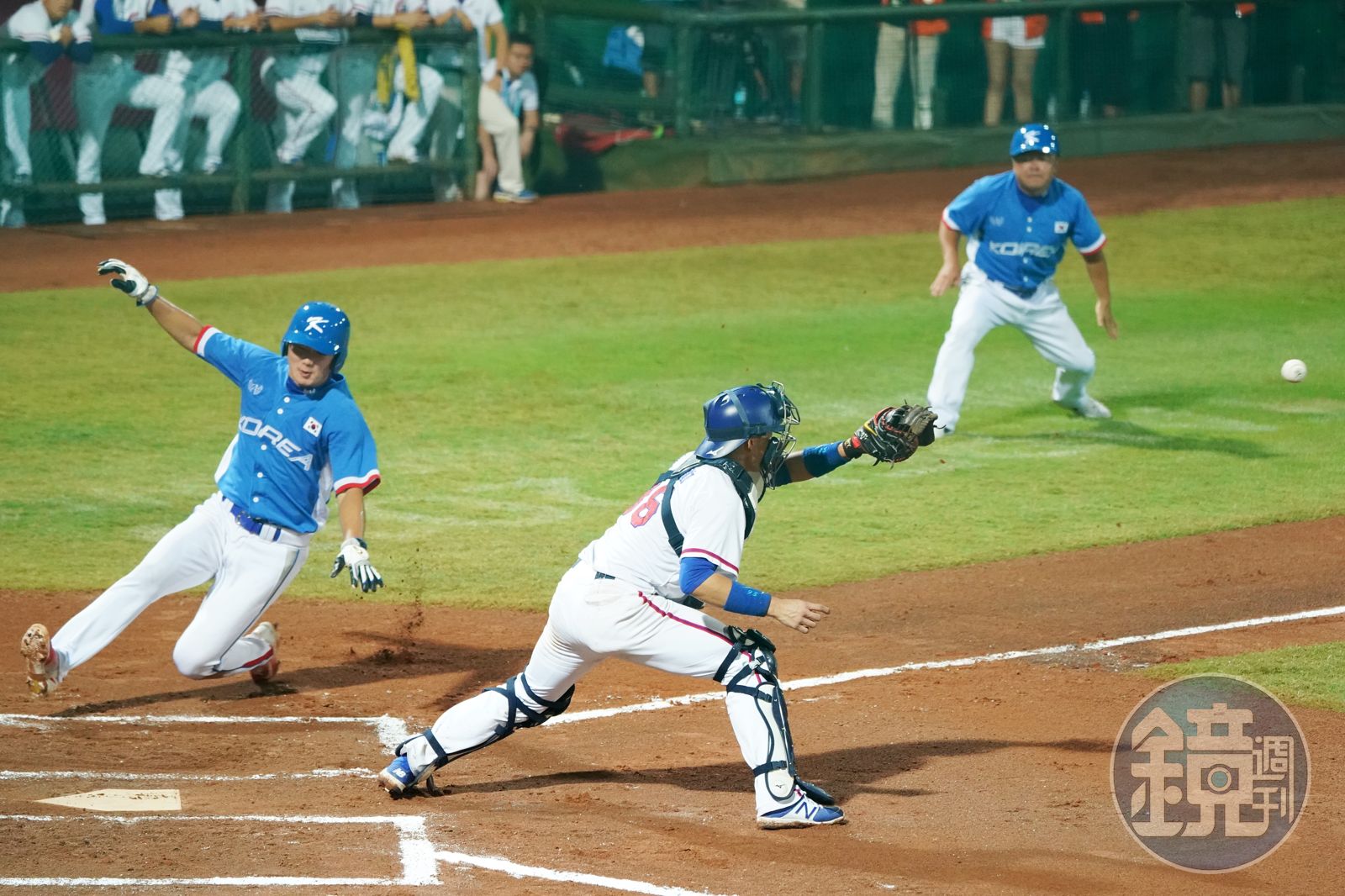 最受矚目的棒球預賽中,雙方纏鬥九局,台灣一度將比分拉至3比4,不過在九局上因為失誤,送南韓選手上一、二壘,加上七棒徐鎬哲犧牲短打、八棒高成民敲出左外野二壘安打, 南韓連得2分,九局下台灣無力扭轉局勢,最終以3比6輸給南韓,無緣晉級。